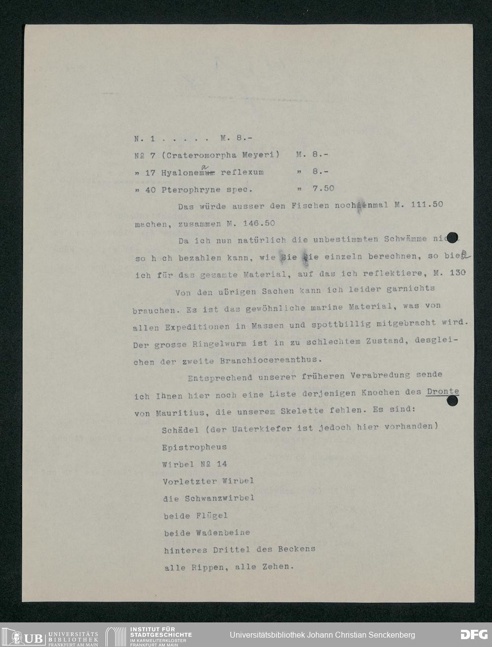 V176 Senckenberg Gesellschaft für Naturforschung, 167 - Ankauf zoologischer Exponate, Bd. 1