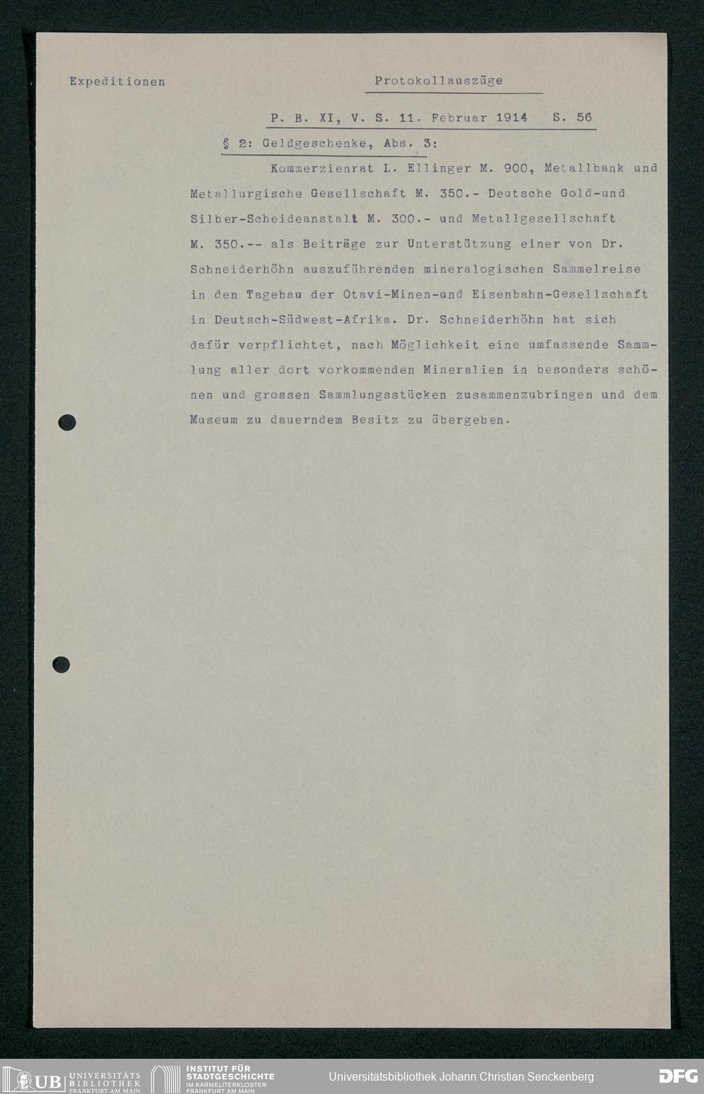 V176 Senckenberg Gesellschaft für Naturforschung, 168 - Sammlungstätigkeit von Privatpersonen und Organisationen für die Sammlungen des Senckenbergmuseums