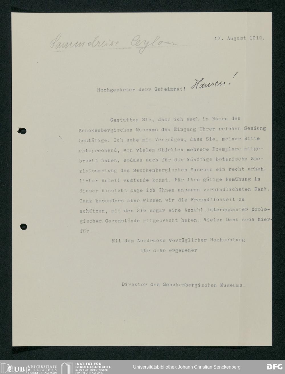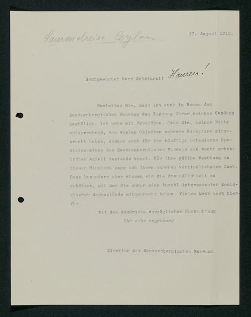 V176 Senckenberg Gesellschaft für Naturforschung, 168 - Sammlungstätigkeit von Privatpersonen und Organisationen für die Sammlungen des Senckenbergmuseums