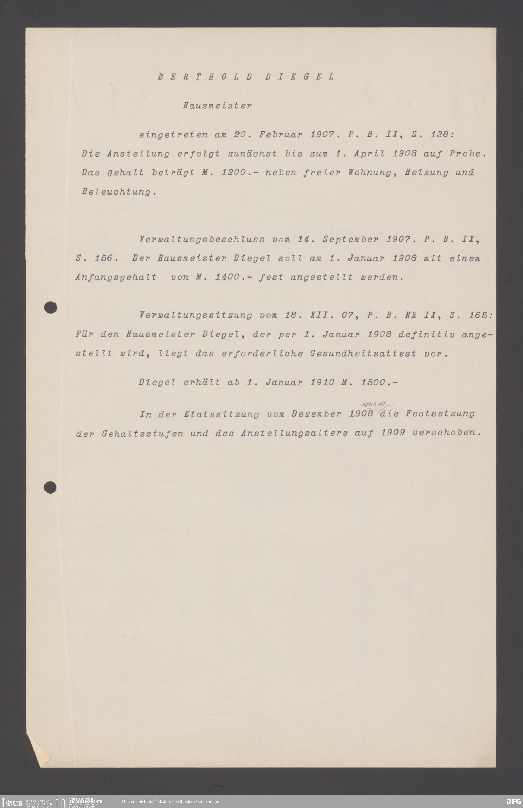 V176 Senckenberg Gesellschaft für Naturforschung, 178 - Personalakten von Hausmeistern