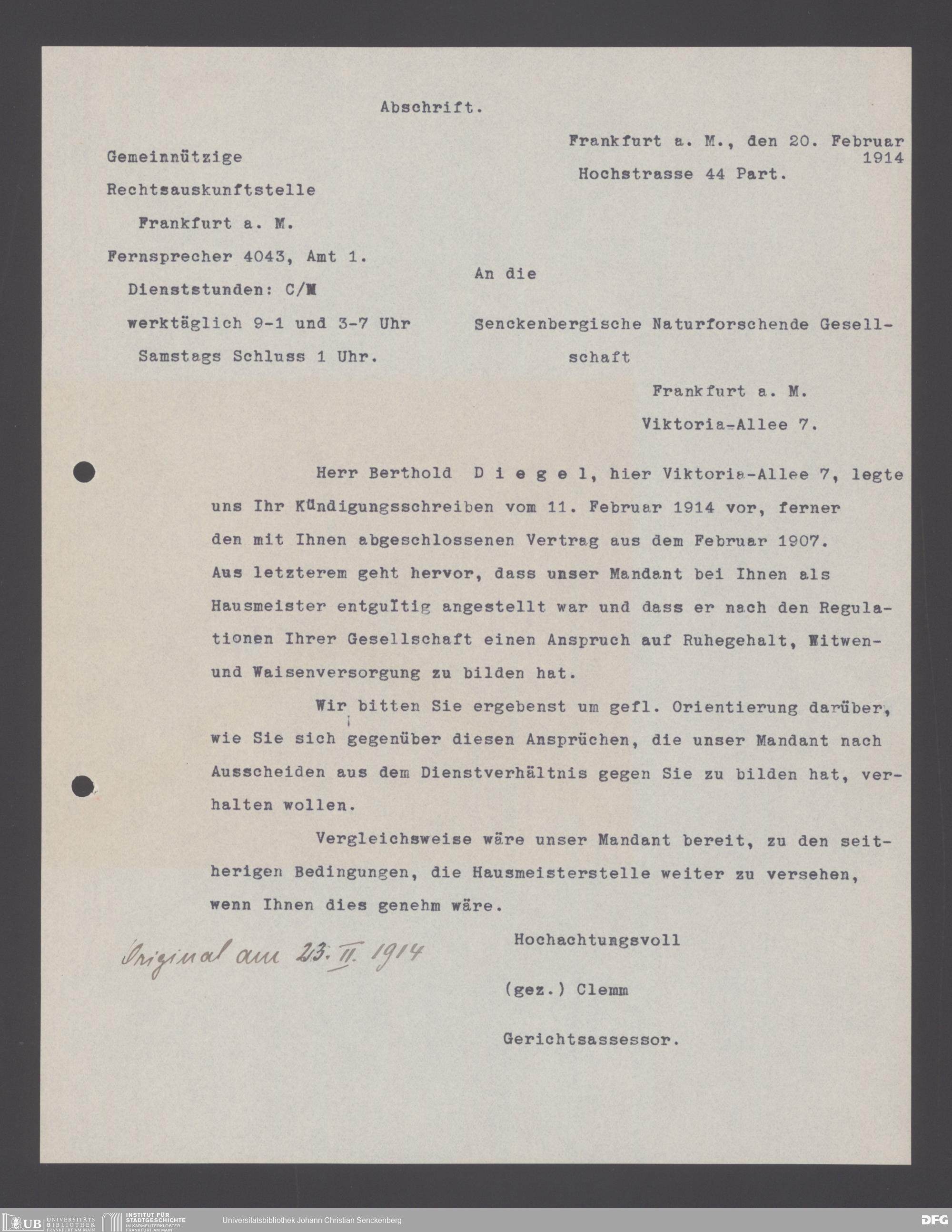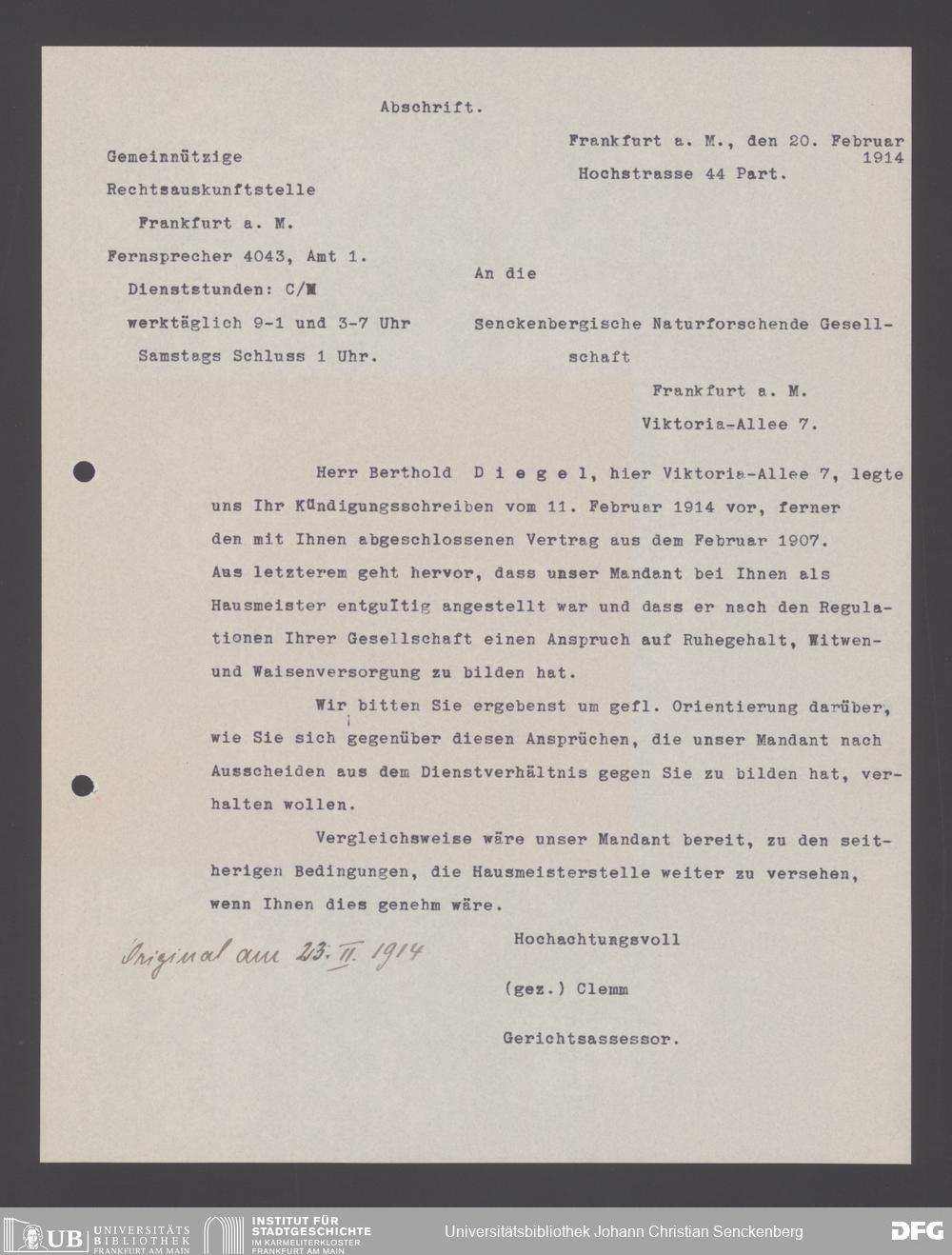 V176 Senckenberg Gesellschaft für Naturforschung, 178 - Personalakten von Hausmeistern