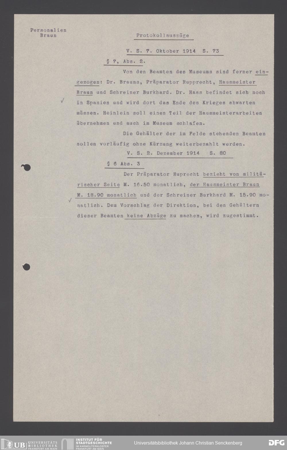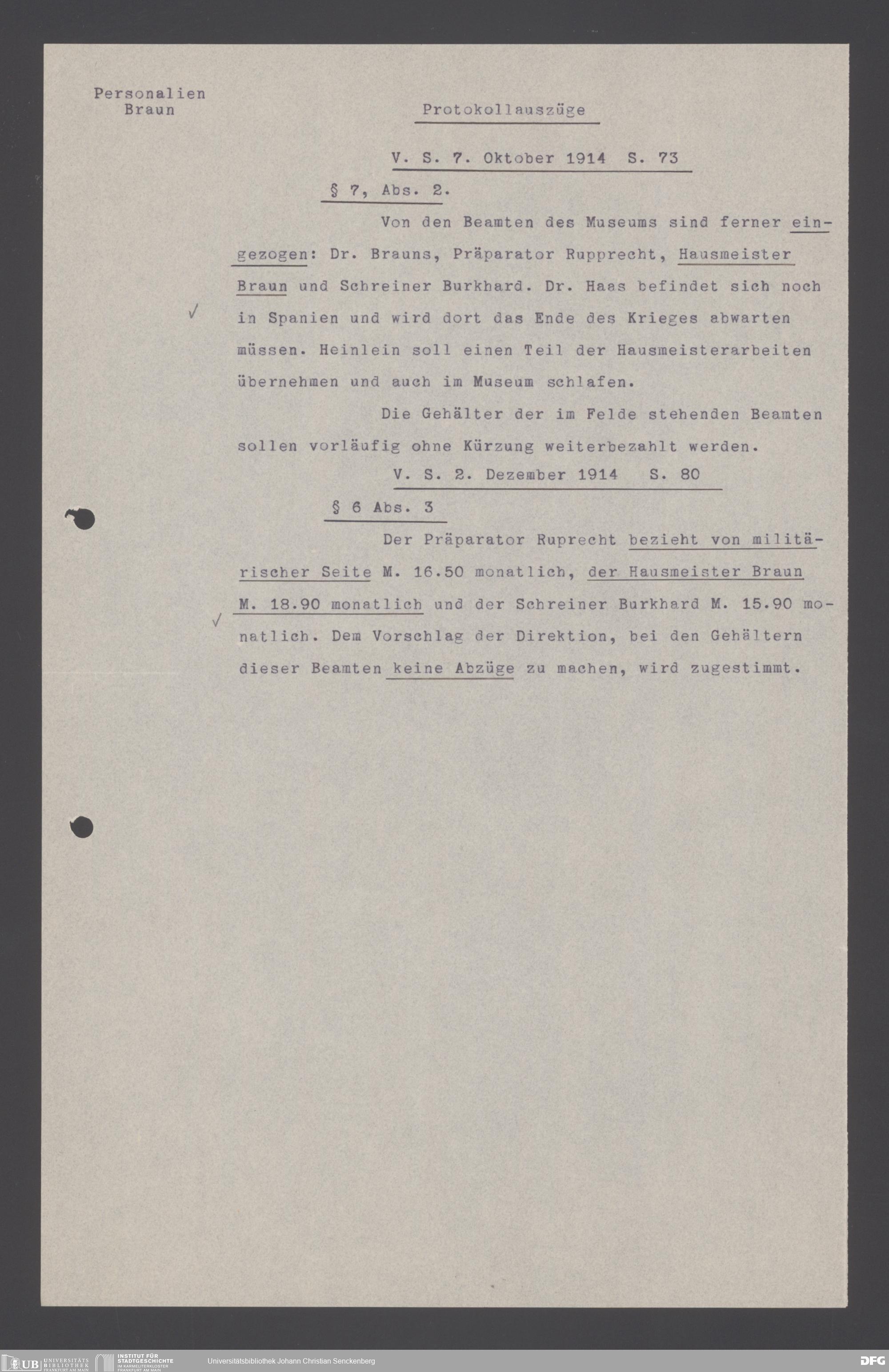 V176 Senckenberg Gesellschaft für Naturforschung, 178 - Personalakten von Hausmeistern