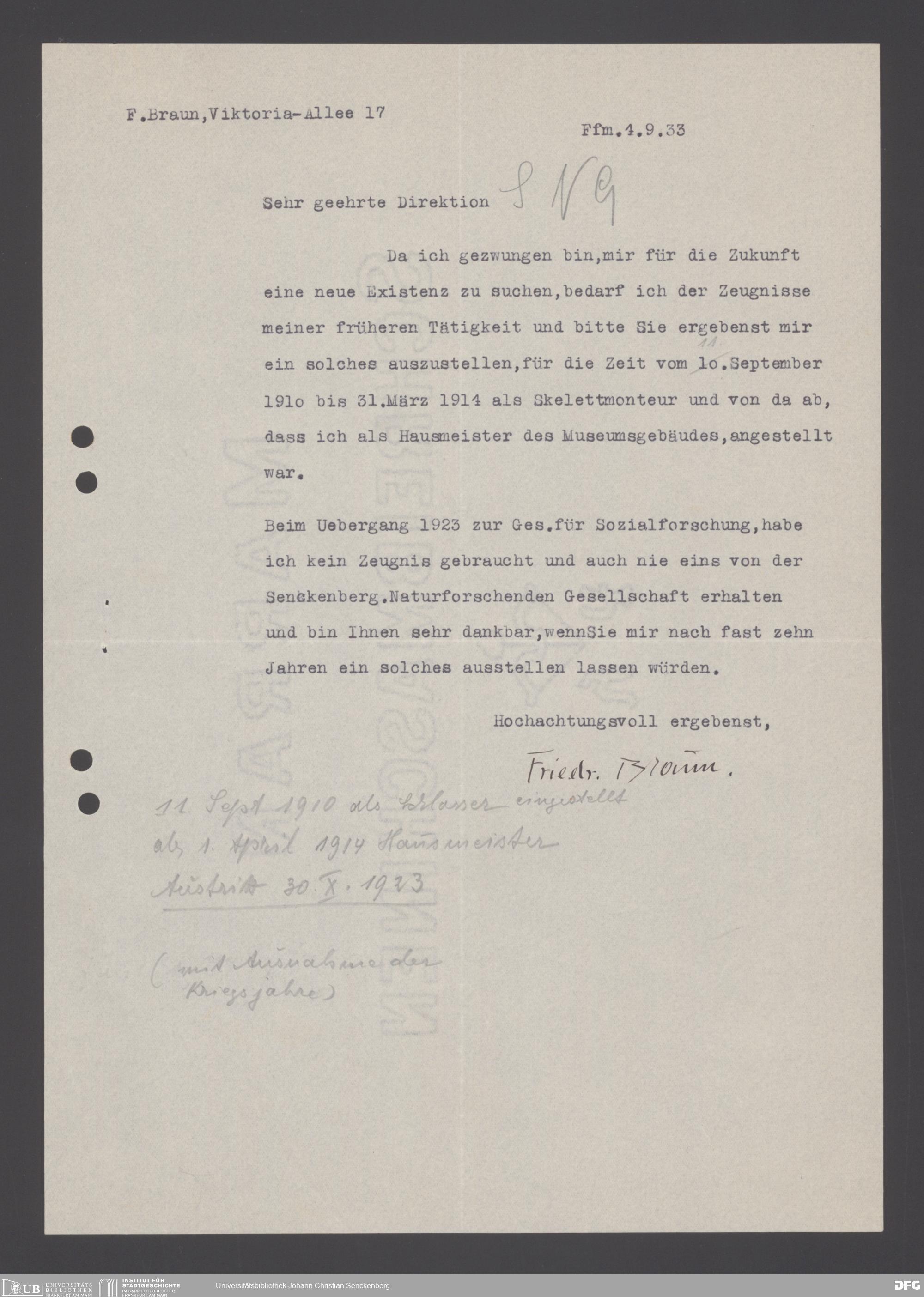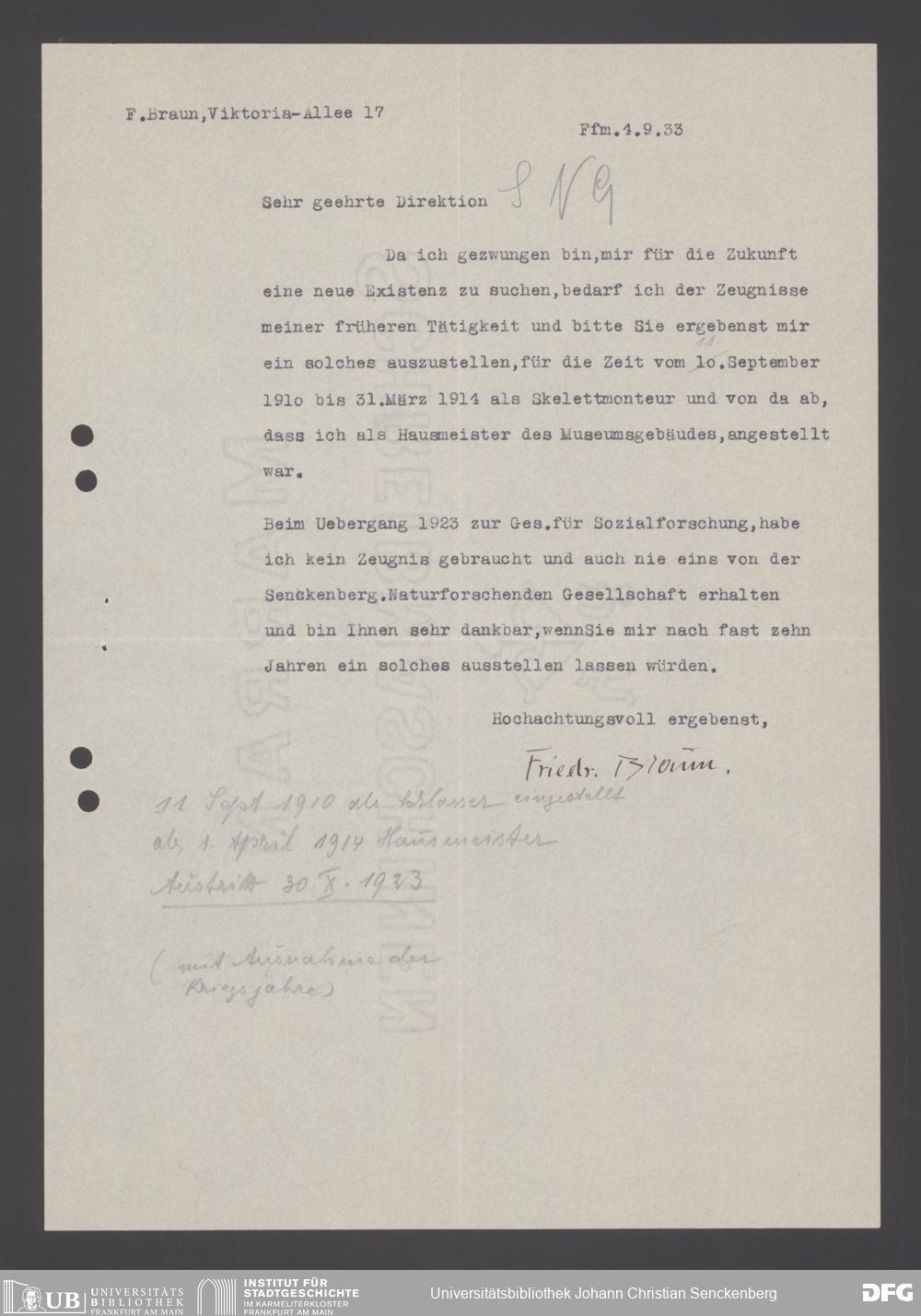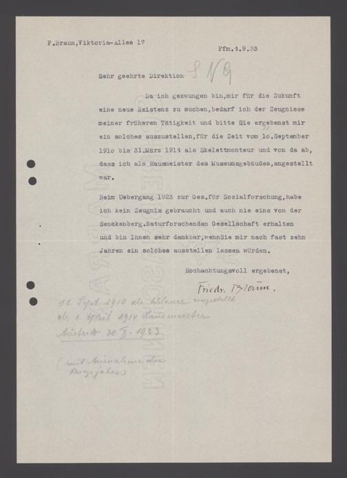 V176 Senckenberg Gesellschaft für Naturforschung, 178 - Personalakten von Hausmeistern
