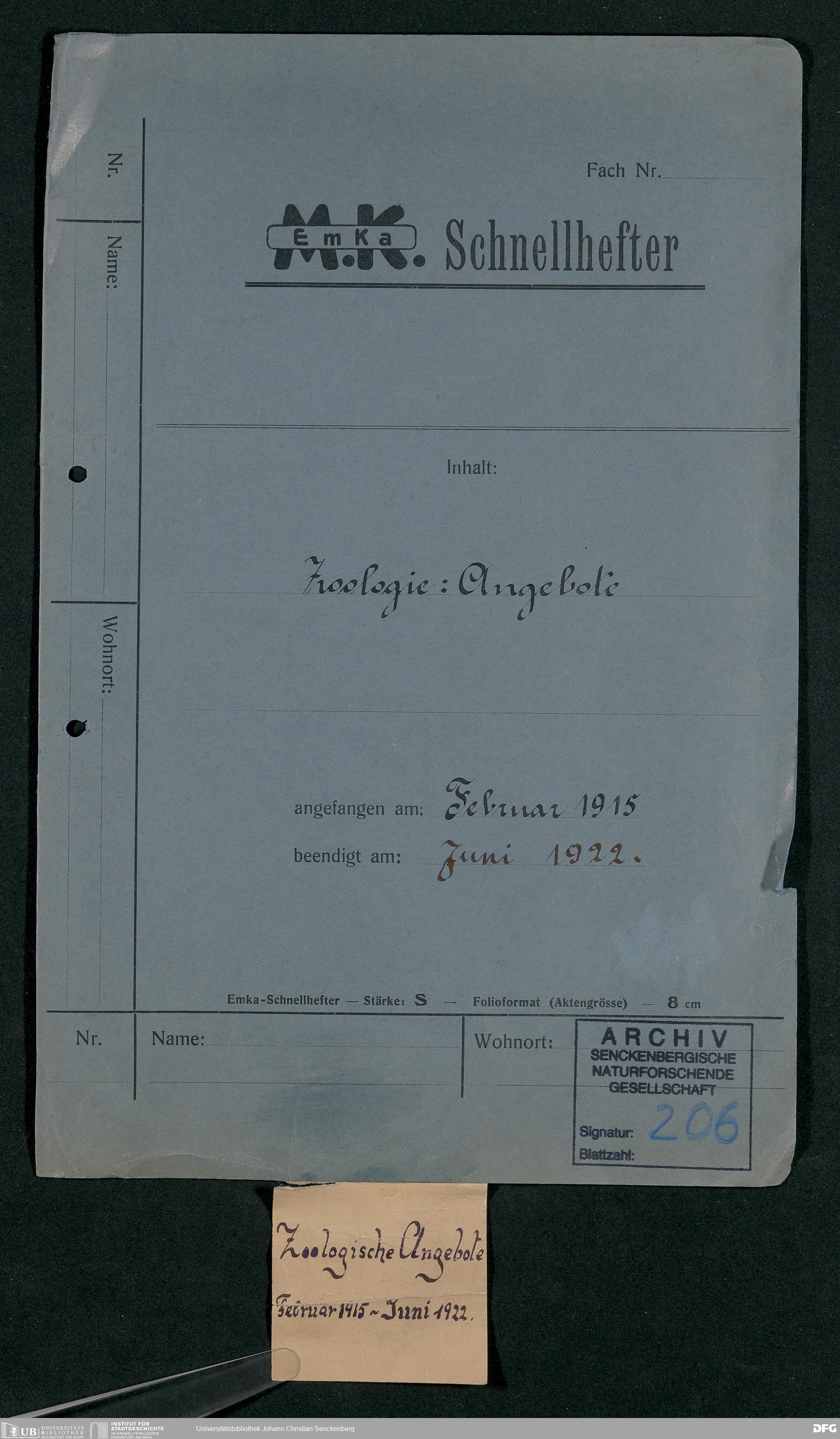 V176 Senckenberg Gesellschaft für Naturforschung, 206 - Angebotene zoologische Exponate, Bd. 5