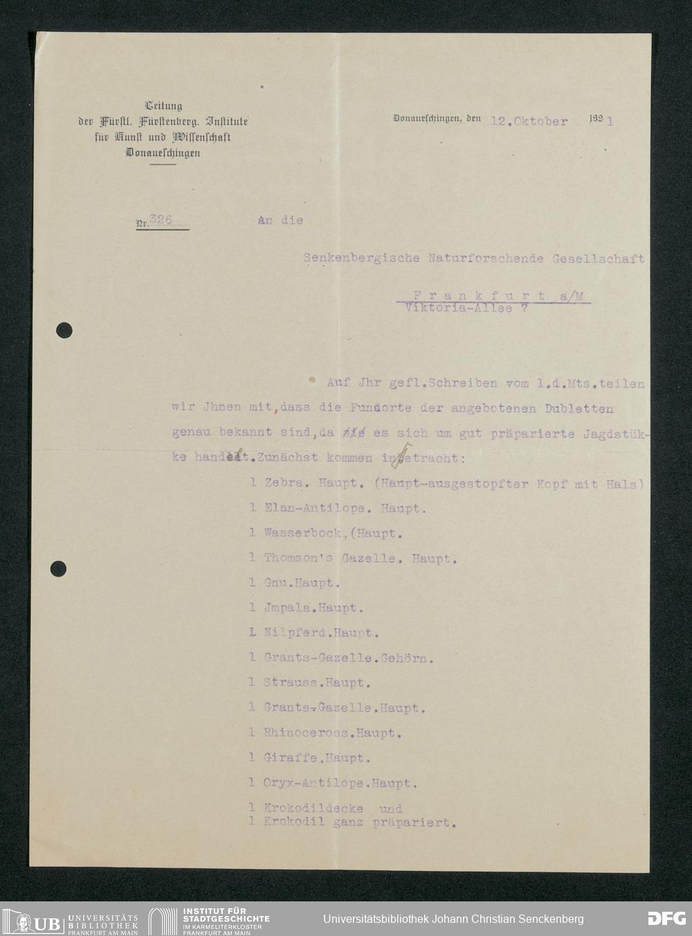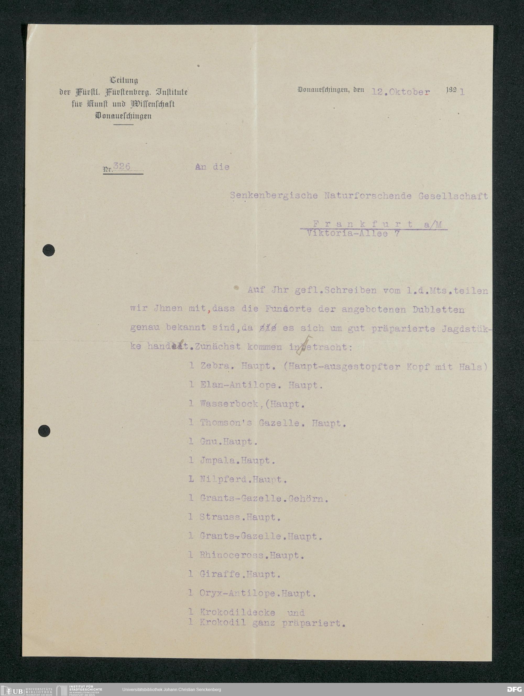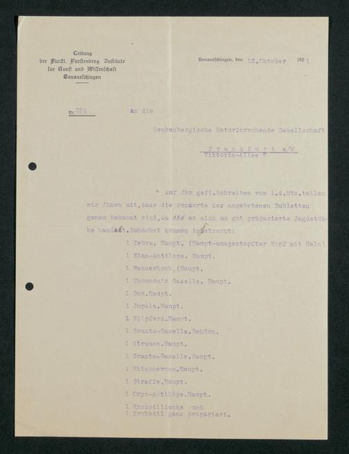 V176 Senckenberg Gesellschaft für Naturforschung, 206 - Angebotene zoologische Exponate, Bd. 5