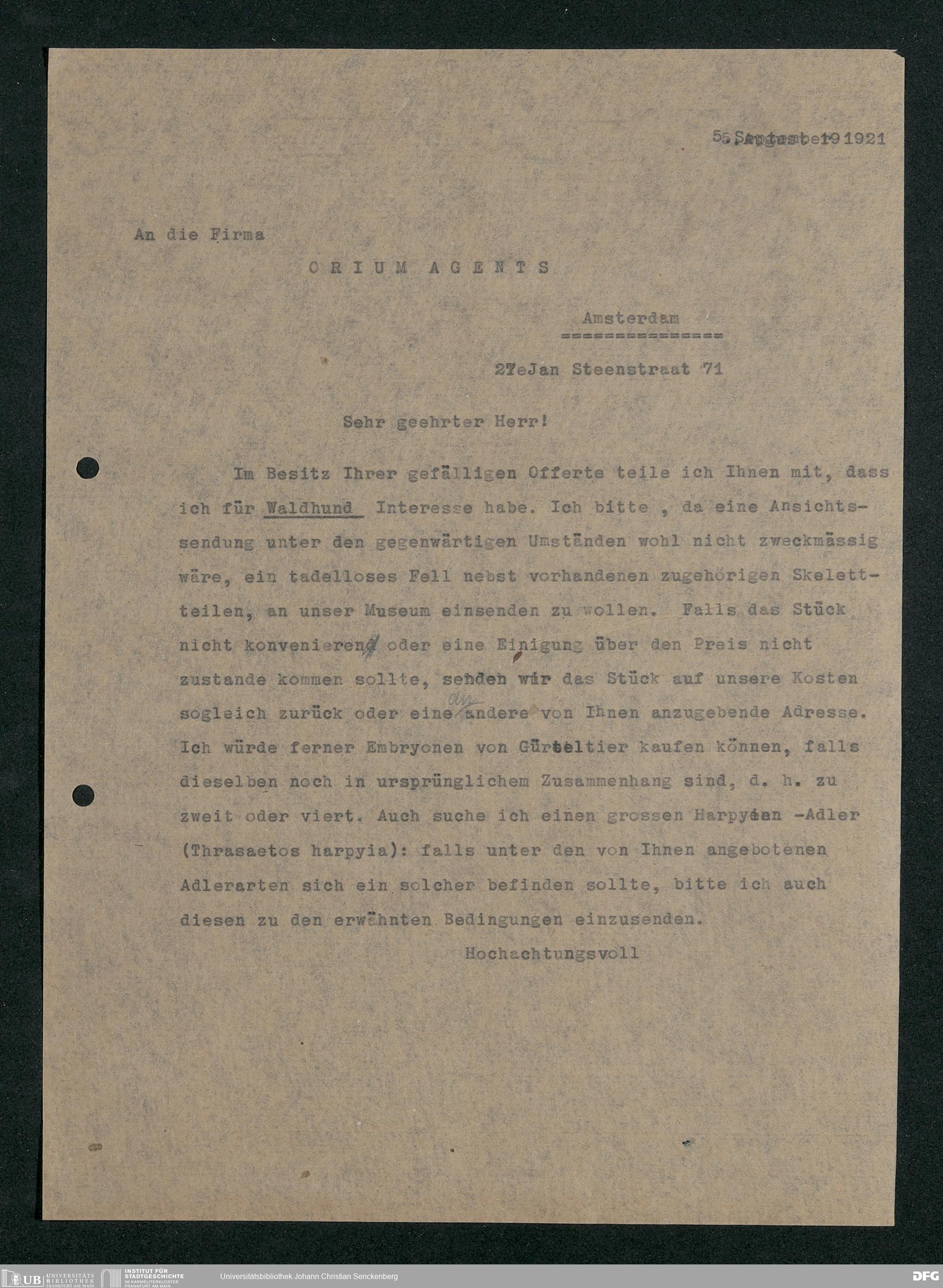 V176 Senckenberg Gesellschaft für Naturforschung, 206 - Angebotene zoologische Exponate, Bd. 5