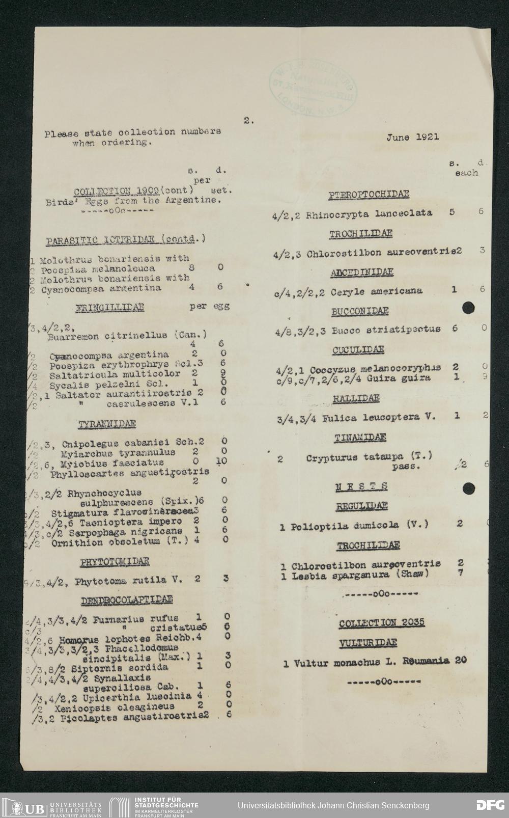 V176 Senckenberg Gesellschaft für Naturforschung, 206 - Angebotene zoologische Exponate, Bd. 5