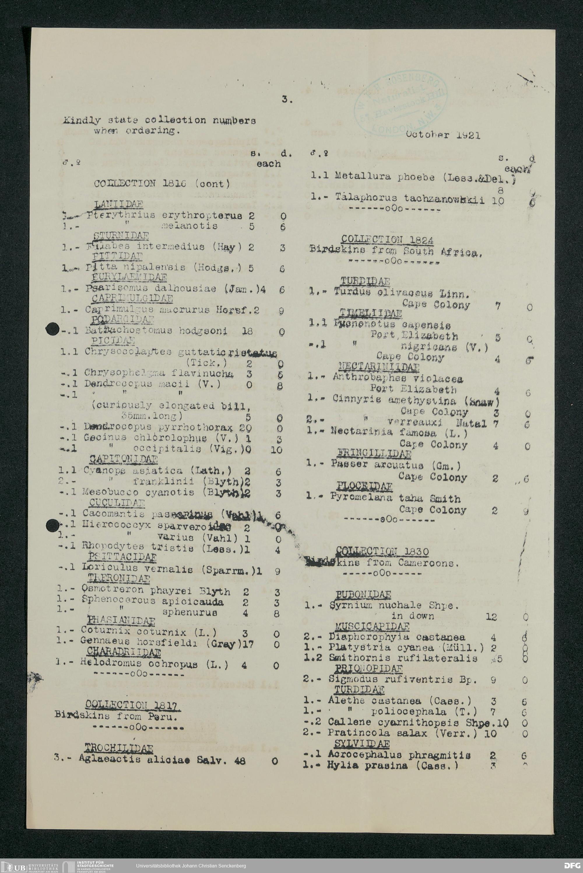 V176 Senckenberg Gesellschaft für Naturforschung, 206 - Angebotene zoologische Exponate, Bd. 5
