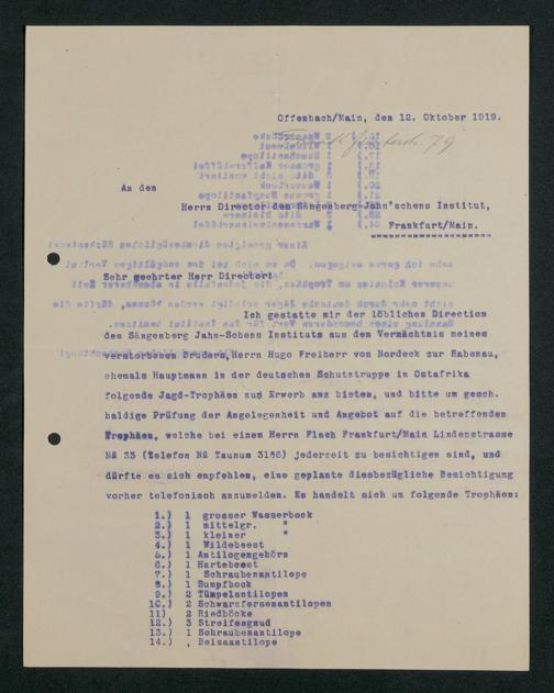 V176 Senckenberg Gesellschaft für Naturforschung, 206 - Angebotene zoologische Exponate, Bd. 5