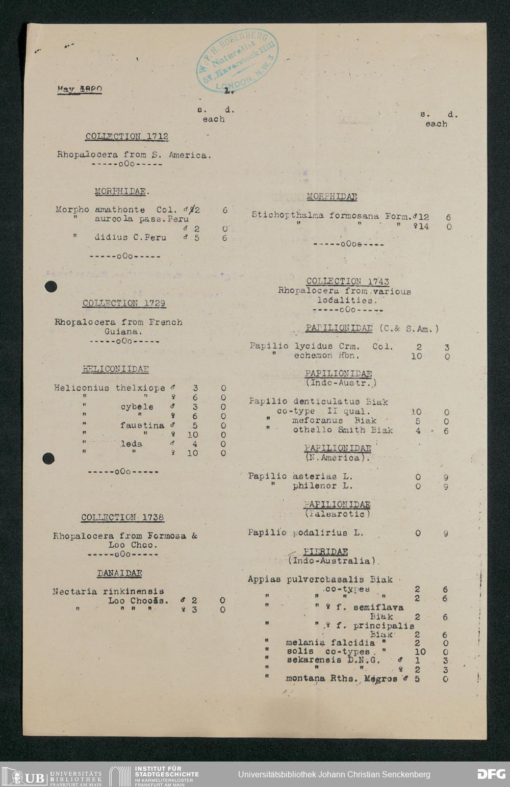 V176 Senckenberg Gesellschaft für Naturforschung, 206 - Angebotene zoologische Exponate, Bd. 5