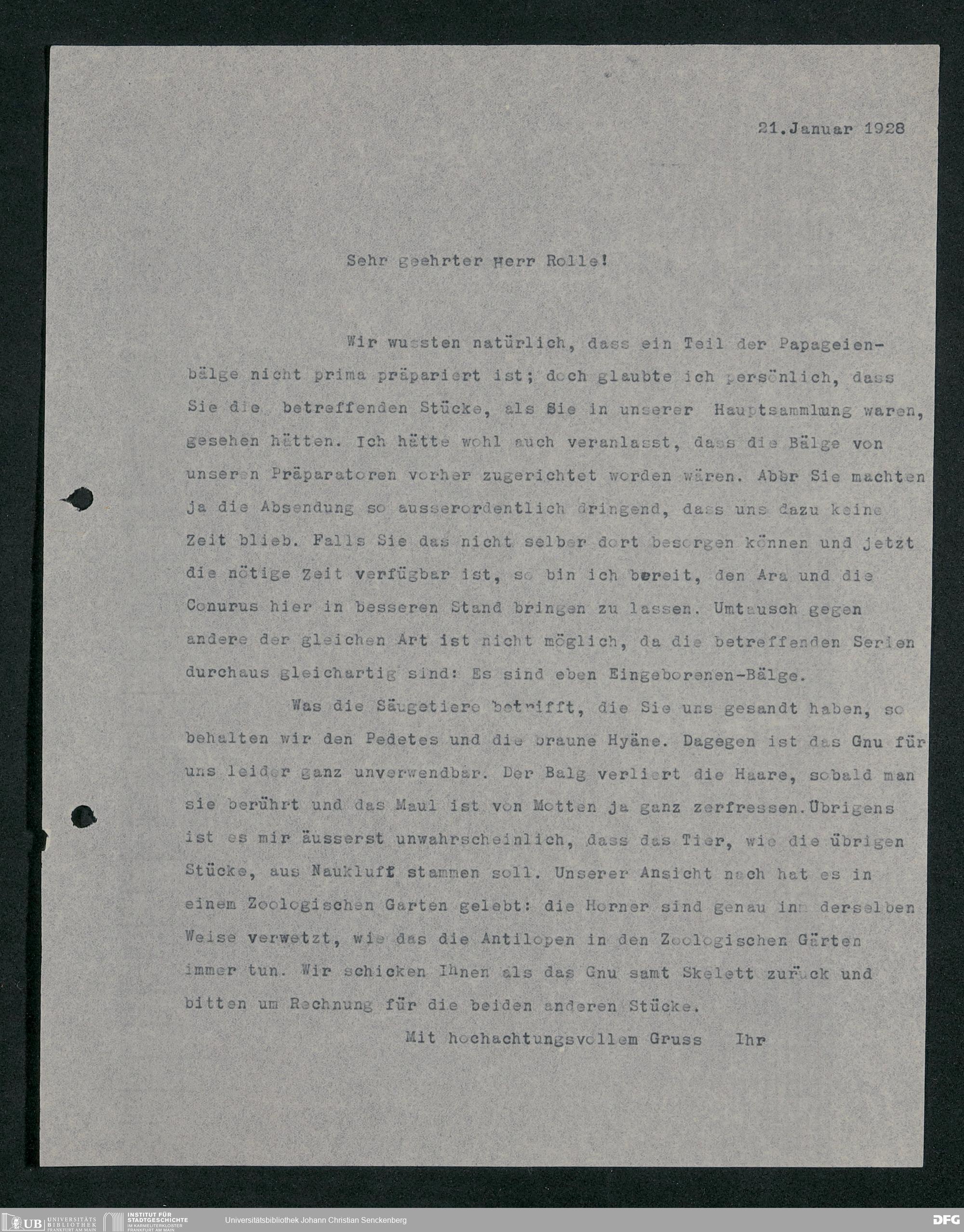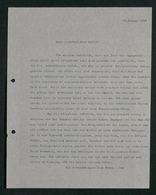 V176 Senckenberg Gesellschaft für Naturforschung, 210 - Erwerb zoologischer Exponate bei der Firma Kosmos Naturhistorisches und ethnographisches Institut Hermann Rolle
