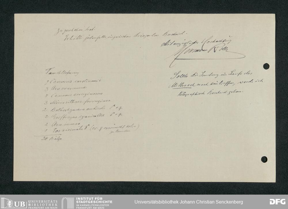 V176 Senckenberg Gesellschaft für Naturforschung, 210 - Erwerb zoologischer Exponate bei der Firma Kosmos Naturhistorisches und ethnographisches Institut Hermann Rolle