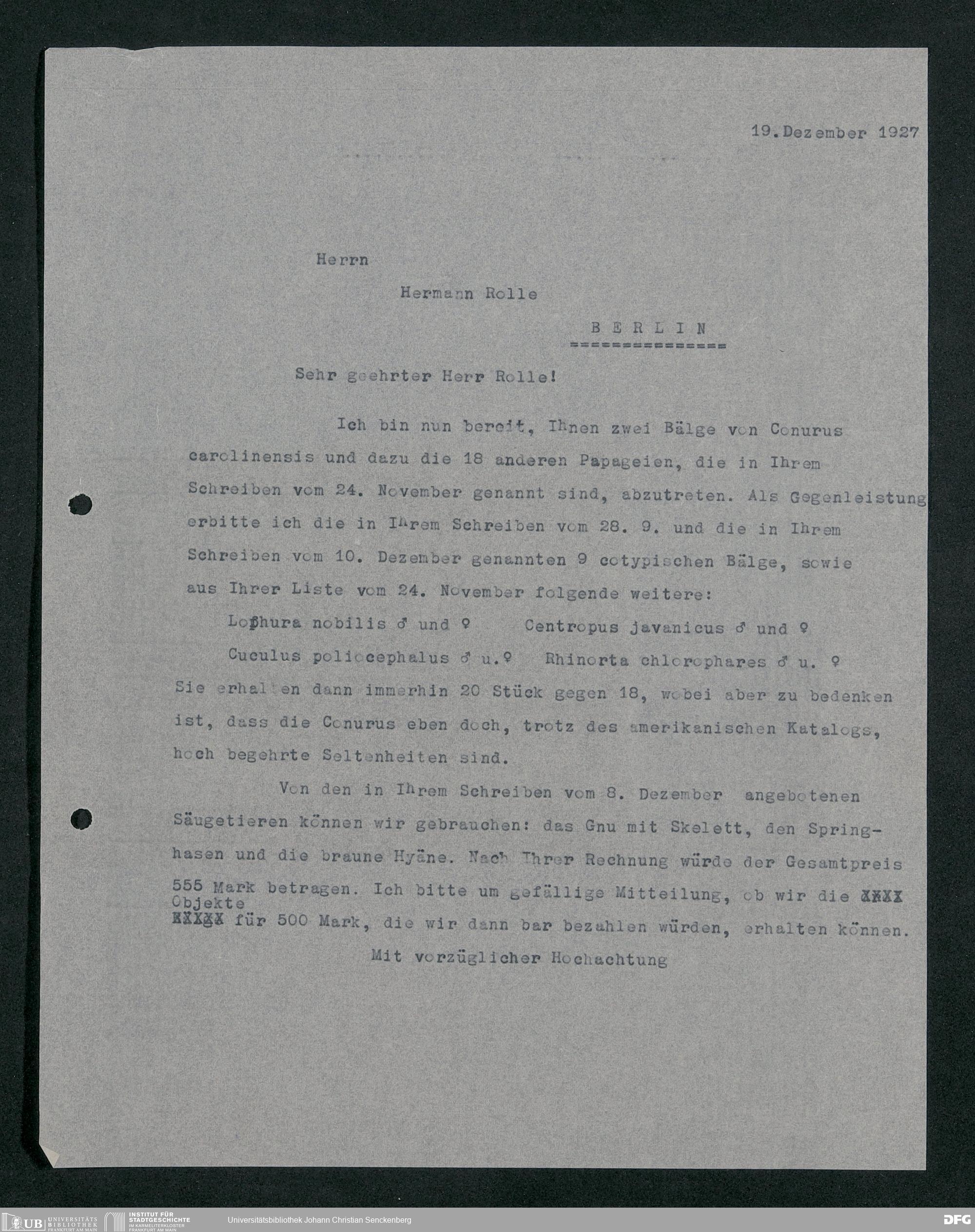 V176 Senckenberg Gesellschaft für Naturforschung, 210 - Erwerb zoologischer Exponate bei der Firma Kosmos Naturhistorisches und ethnographisches Institut Hermann Rolle