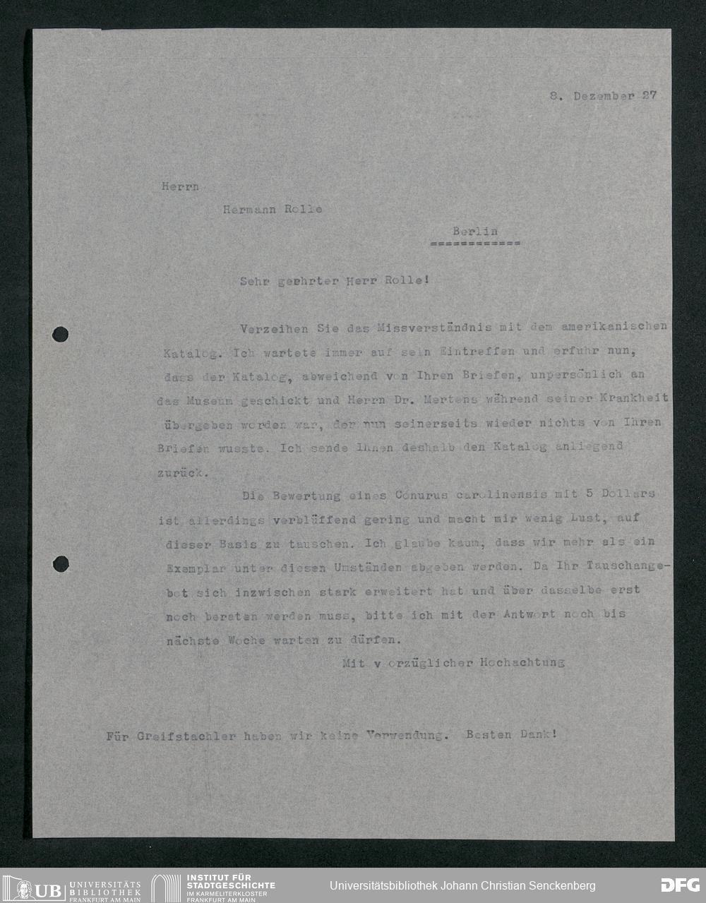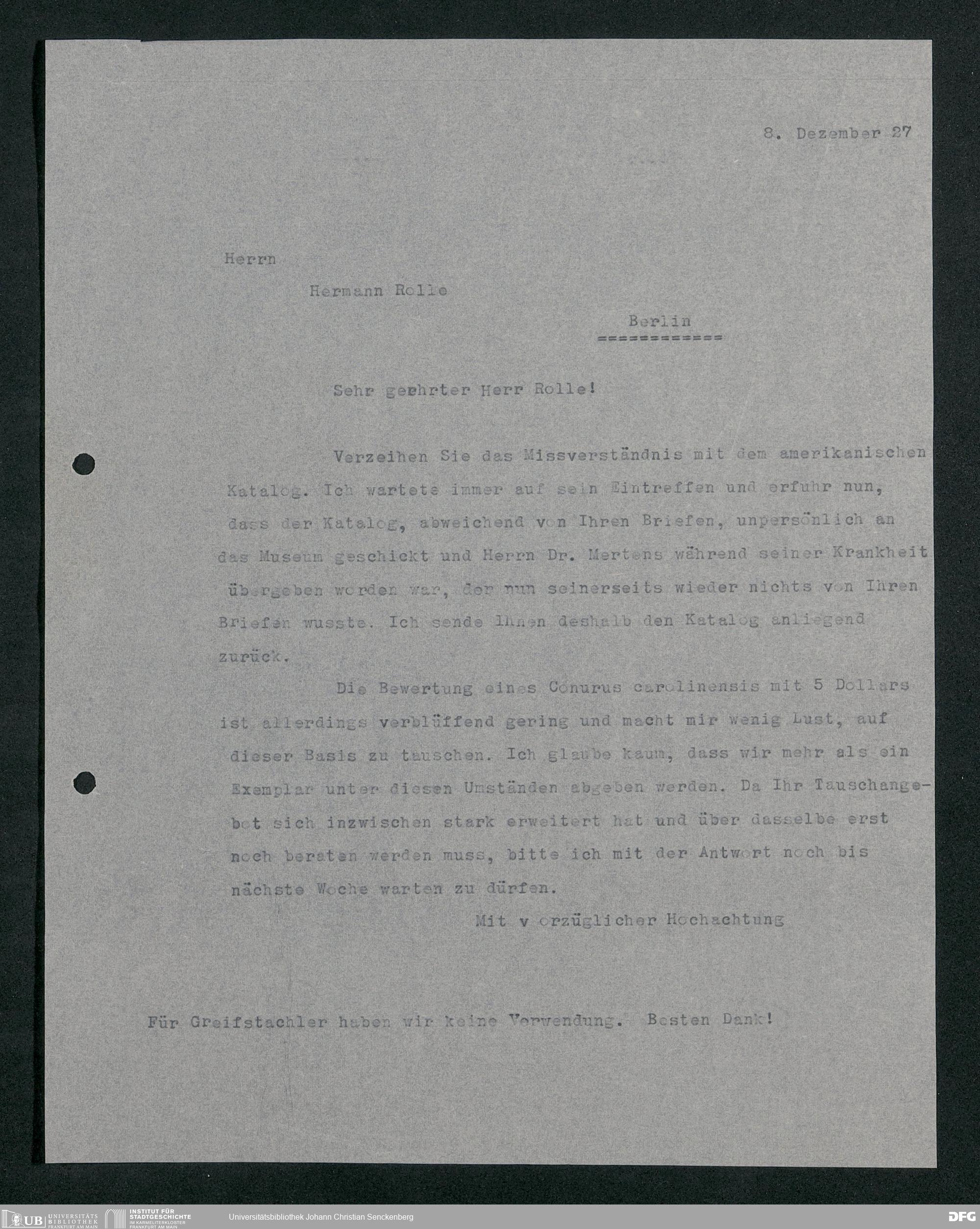 V176 Senckenberg Gesellschaft für Naturforschung, 210 - Erwerb zoologischer Exponate bei der Firma Kosmos Naturhistorisches und ethnographisches Institut Hermann Rolle