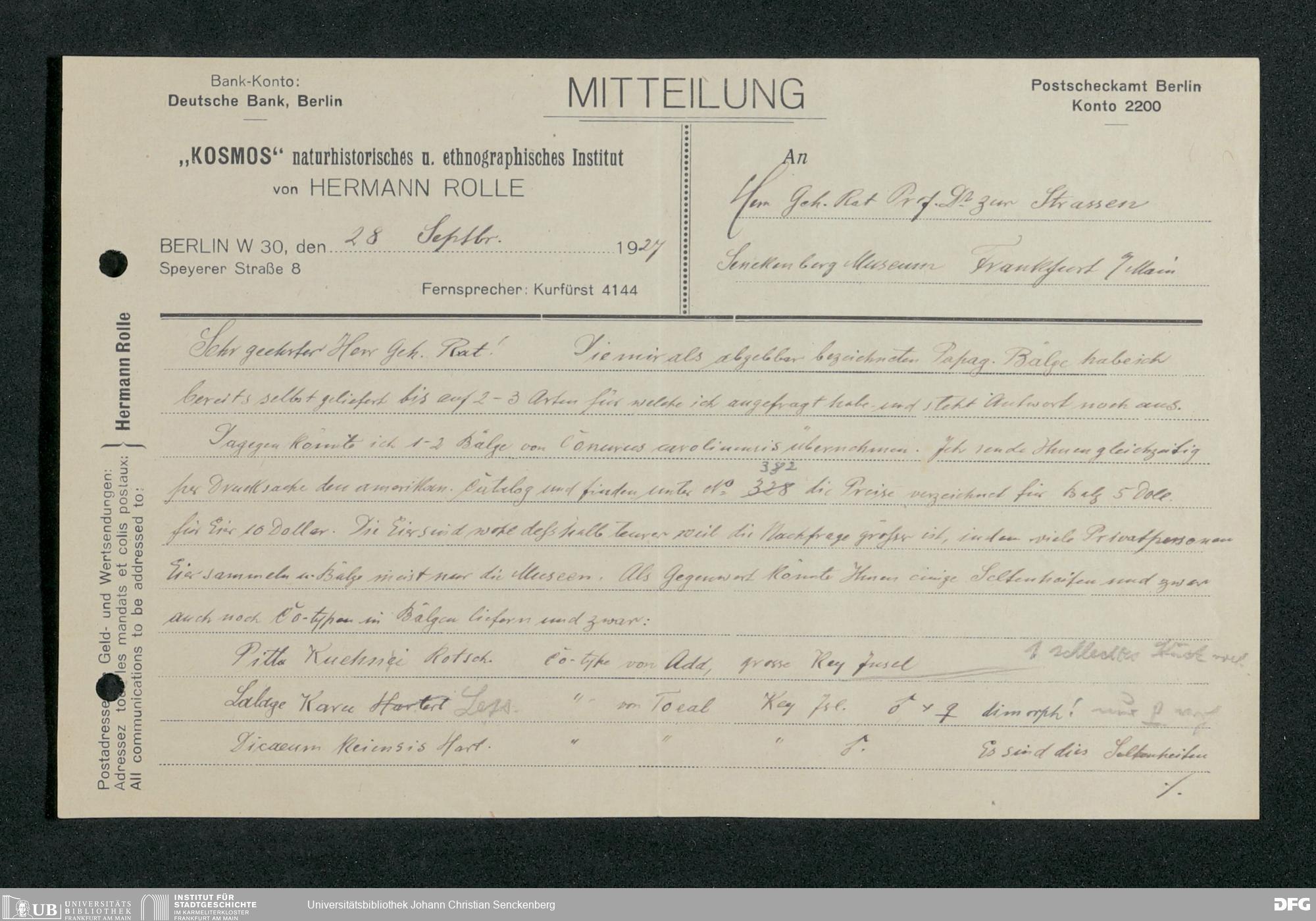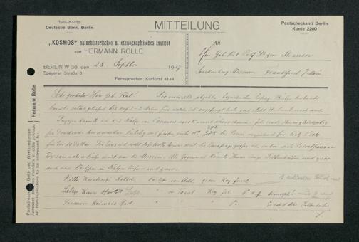 V176 Senckenberg Gesellschaft für Naturforschung, 210 - Erwerb zoologischer Exponate bei der Firma Kosmos Naturhistorisches und ethnographisches Institut Hermann Rolle