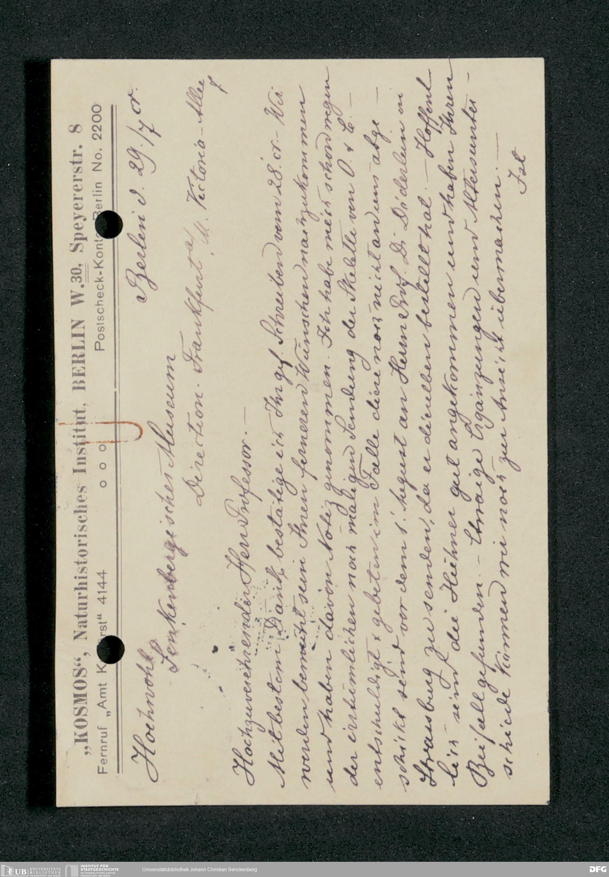 V176 Senckenberg Gesellschaft für Naturforschung, 210 - Erwerb zoologischer Exponate bei der Firma Kosmos Naturhistorisches und ethnographisches Institut Hermann Rolle