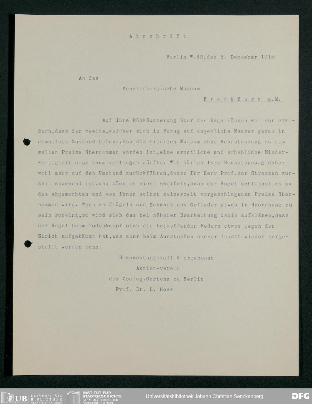 V176 Senckenberg Gesellschaft für Naturforschung, 211 - Reservierung von Zootieren als potenzielle Exponate