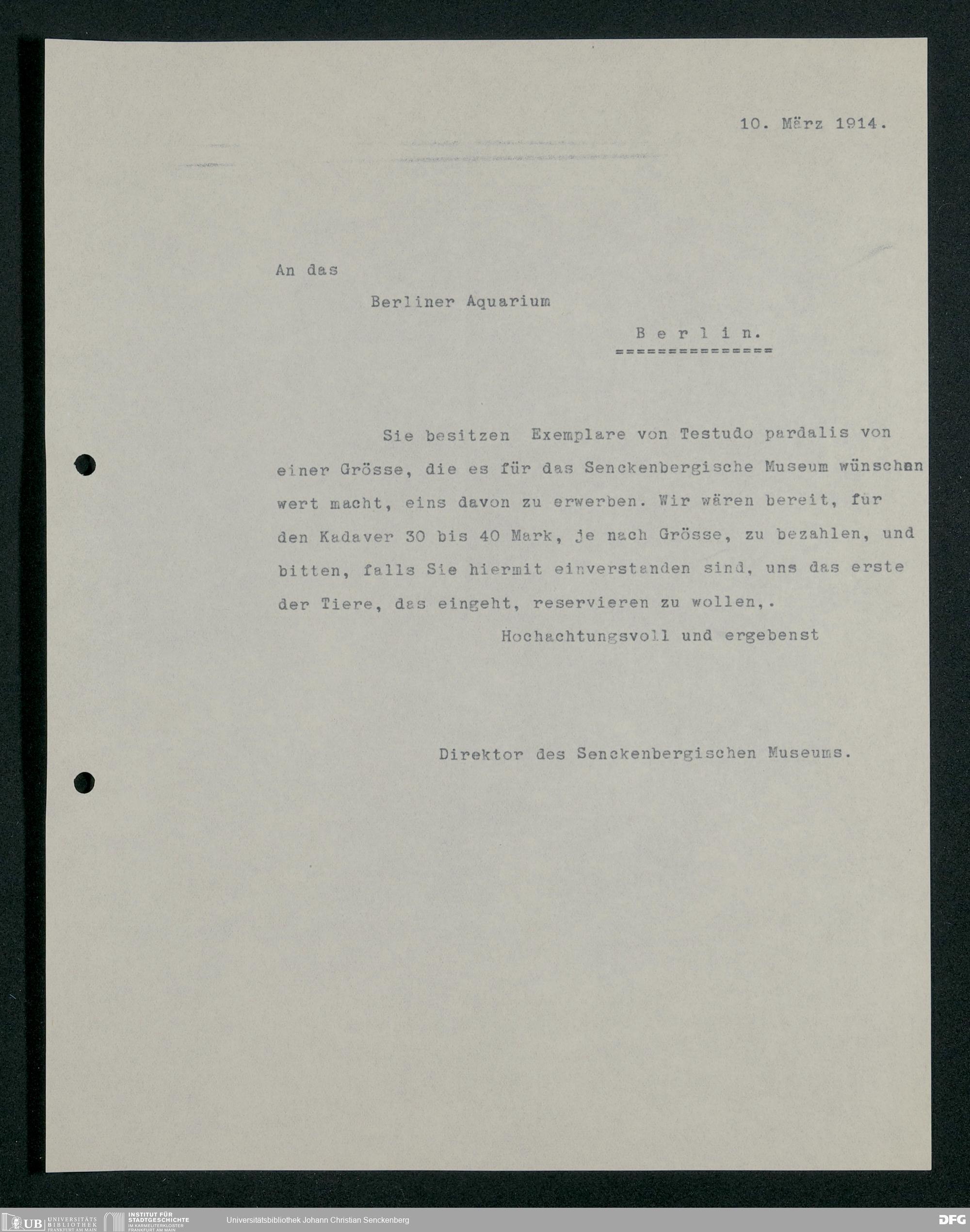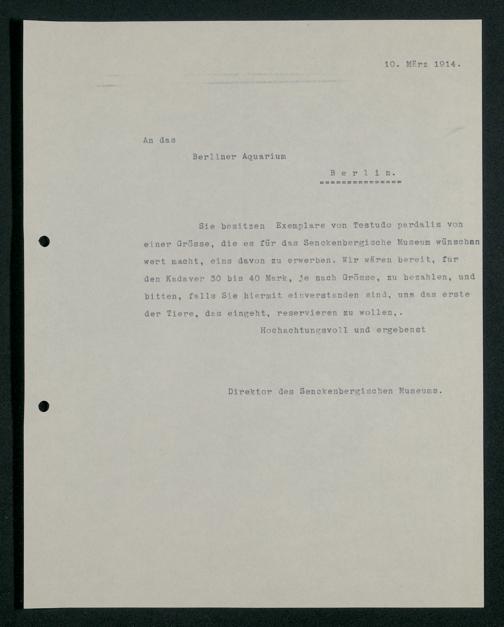 V176 Senckenberg Gesellschaft für Naturforschung, 211 - Reservierung von Zootieren als potenzielle Exponate