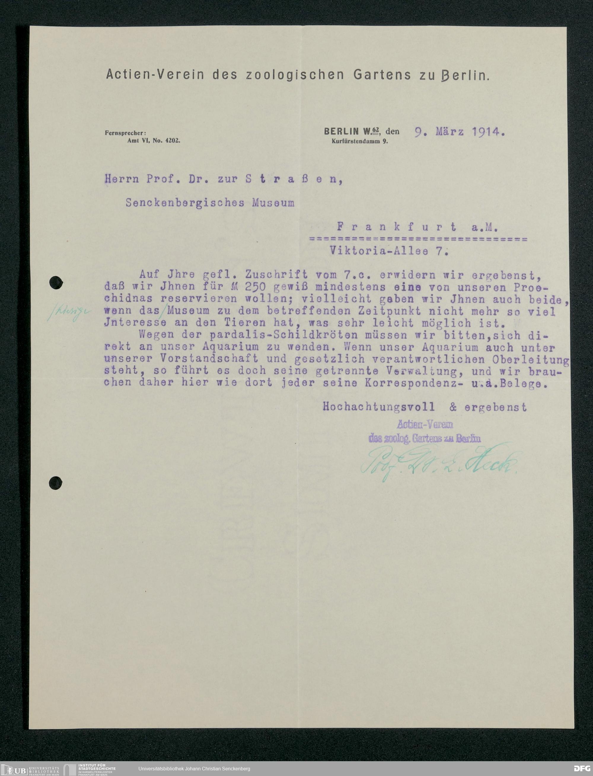 V176 Senckenberg Gesellschaft für Naturforschung, 211 - Reservierung von Zootieren als potenzielle Exponate