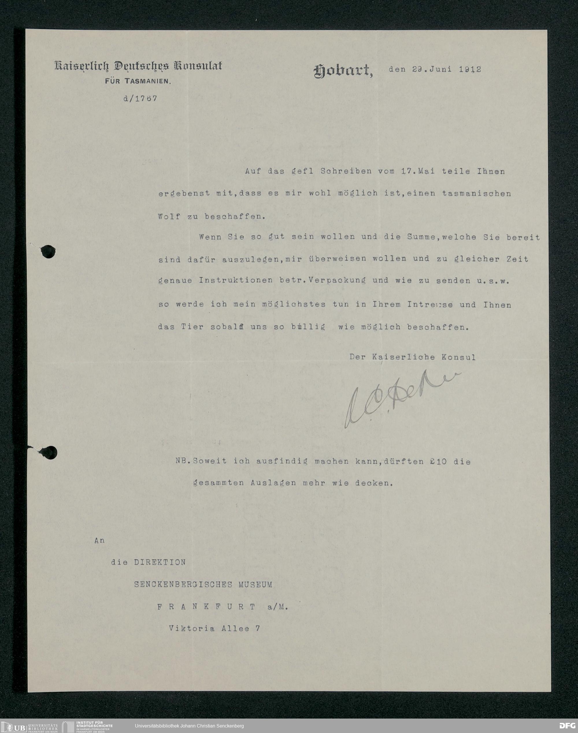 V176 Senckenberg Gesellschaft für Naturforschung, 211 - Reservierung von Zootieren als potenzielle Exponate