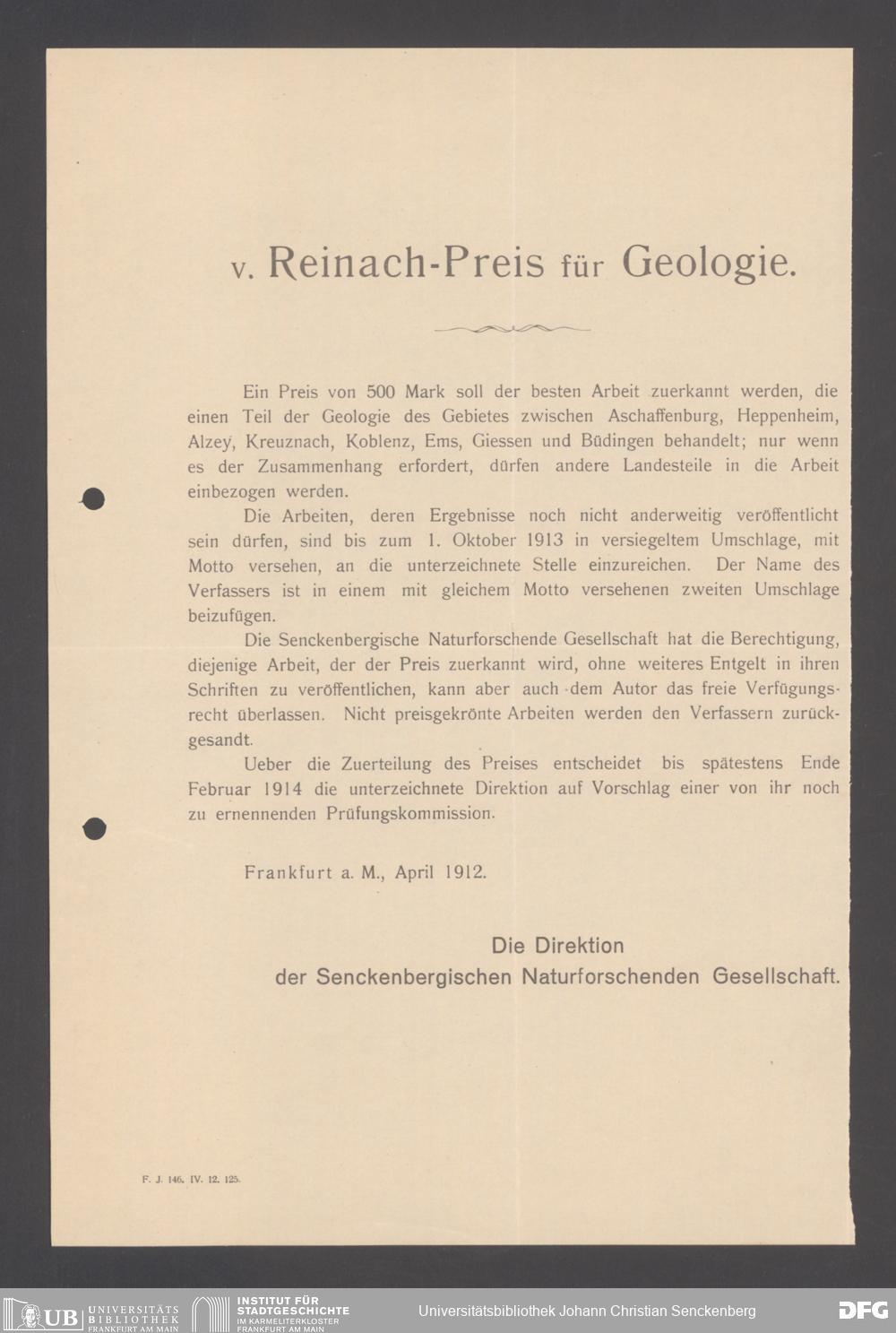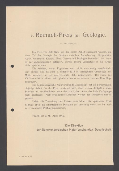 V176 Senckenberg Gesellschaft für Naturforschung, 219 - Albert von Reinach-Preis für Geologie, Paläontologie und Mineralogie