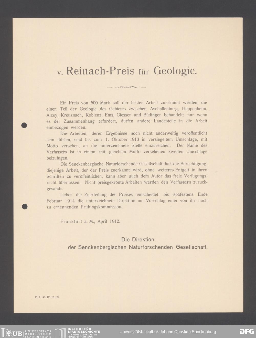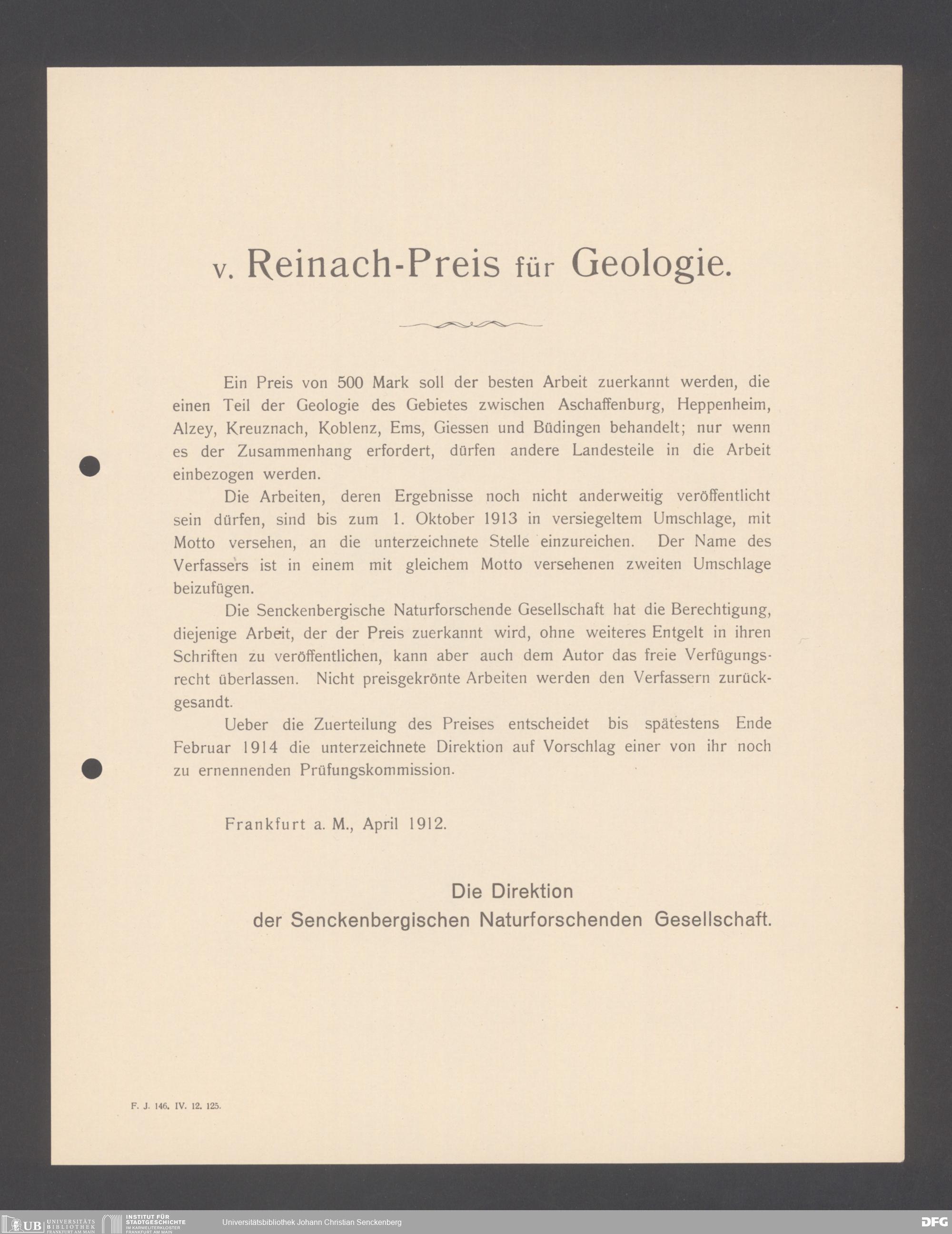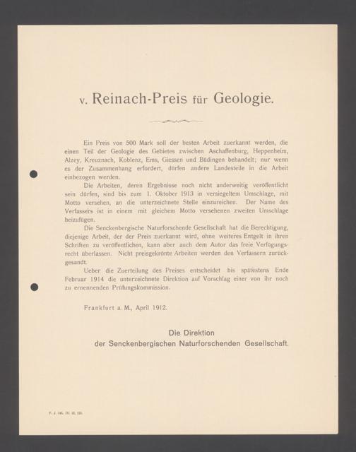 V176 Senckenberg Gesellschaft für Naturforschung, 219 - Albert von Reinach-Preis für Geologie, Paläontologie und Mineralogie