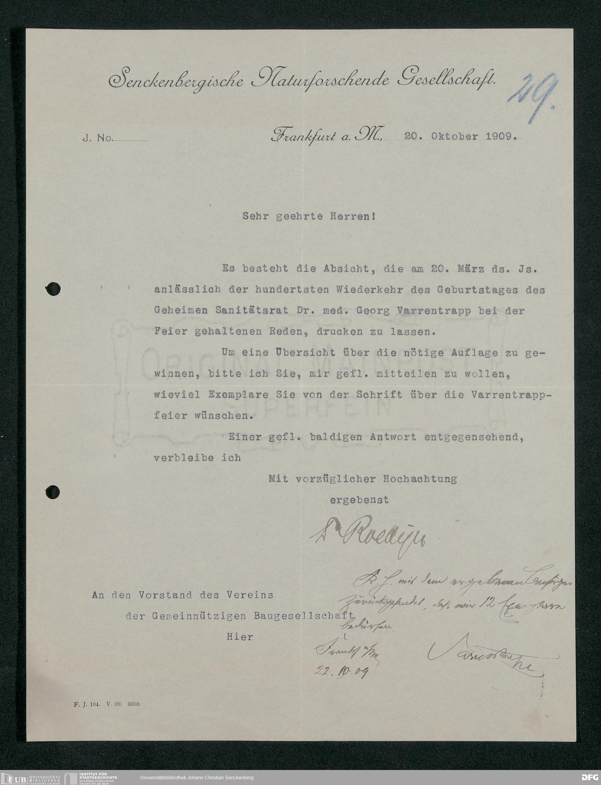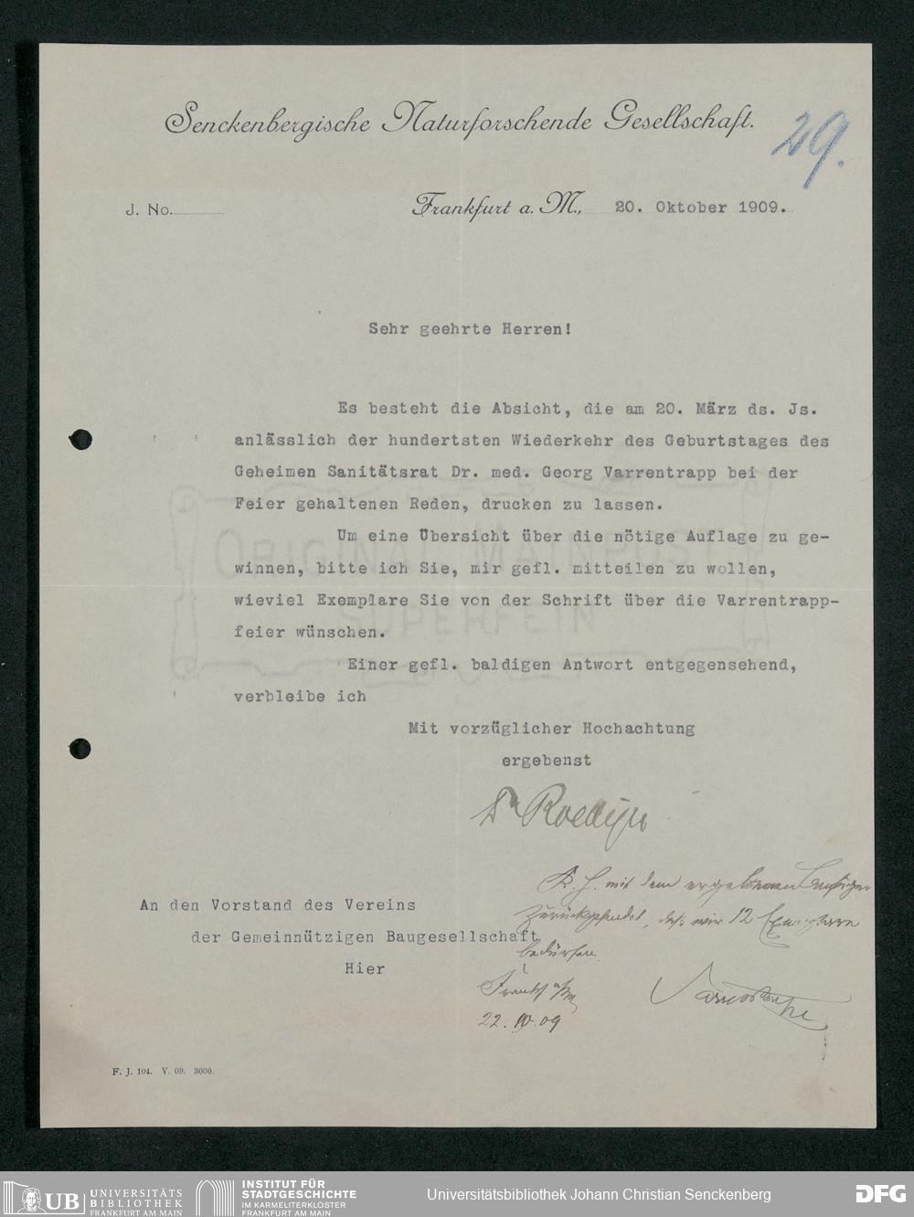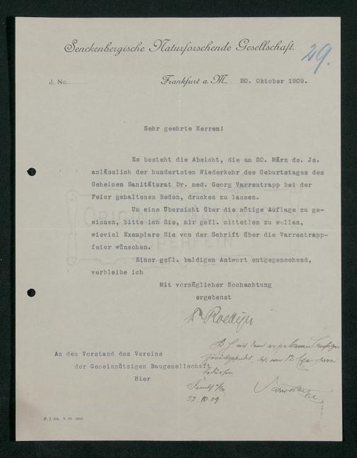 V176 Senckenberg Gesellschaft für Naturforschung, 222 - Feier zum 100. Geburtstag von Johann Georg Varrentrapp