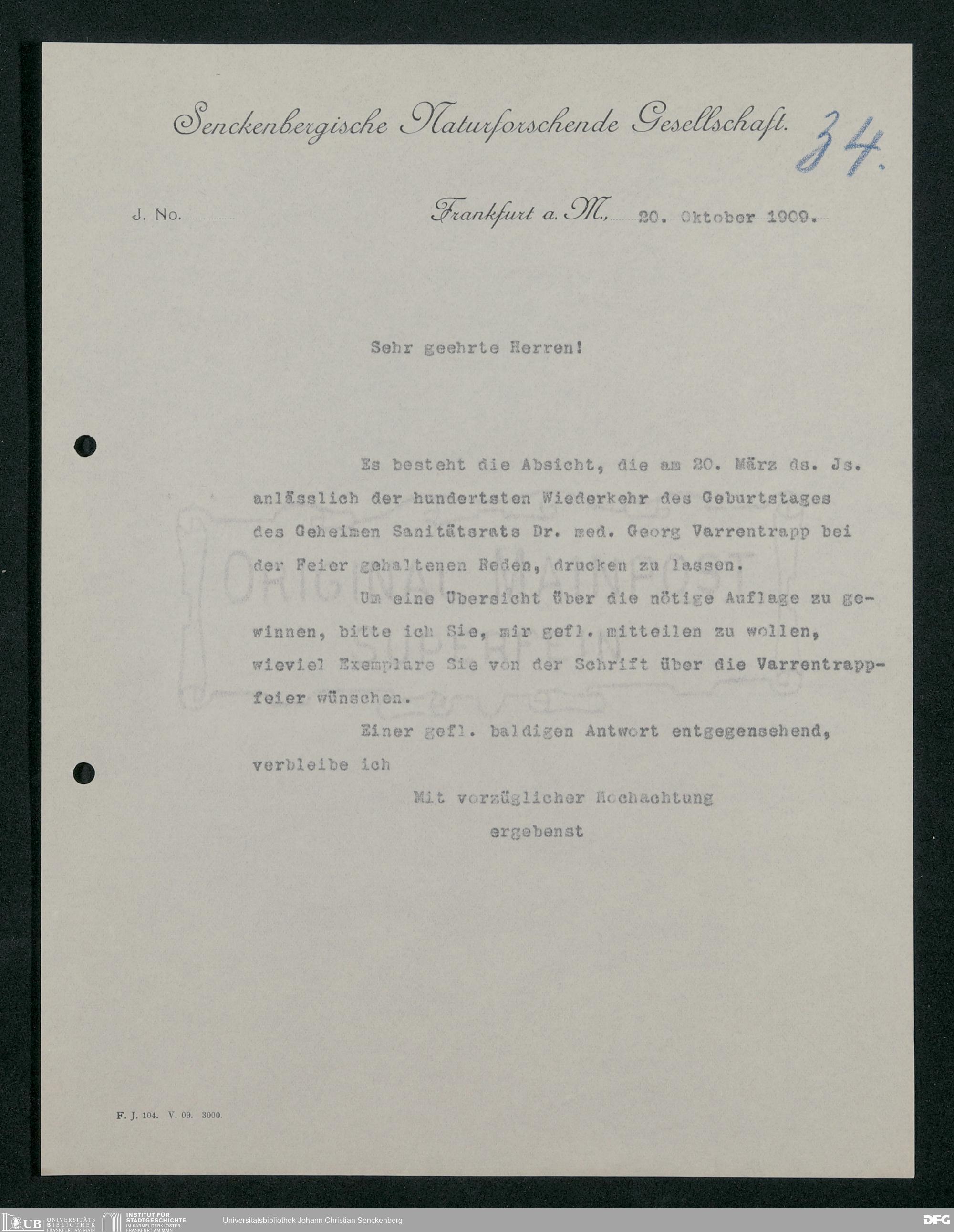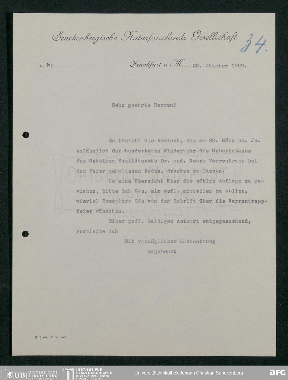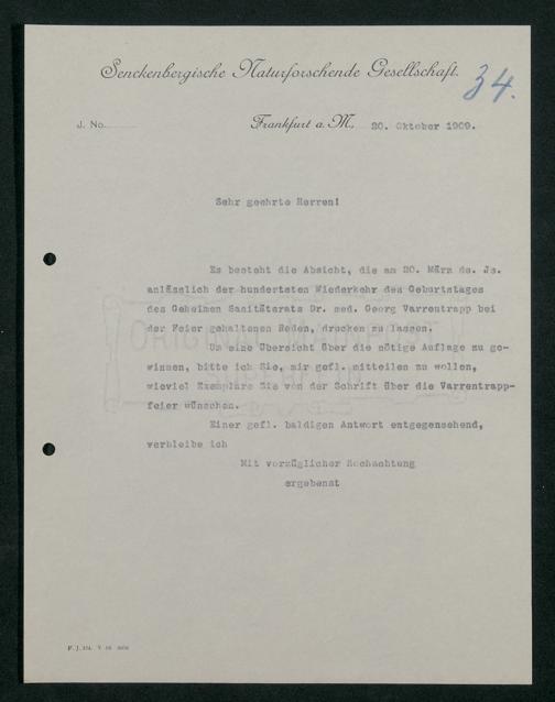 V176 Senckenberg Gesellschaft für Naturforschung, 222 - Feier zum 100. Geburtstag von Johann Georg Varrentrapp