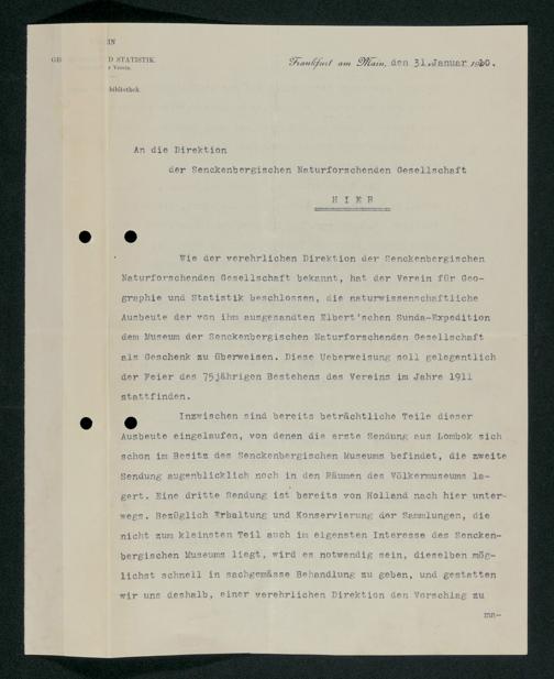 V176 Senckenberg Gesellschaft für Naturforschung, 228 - Unterstützung der Sunda-Expedition des Vereins für Geographie und Statistik zu Frankfurt am Main