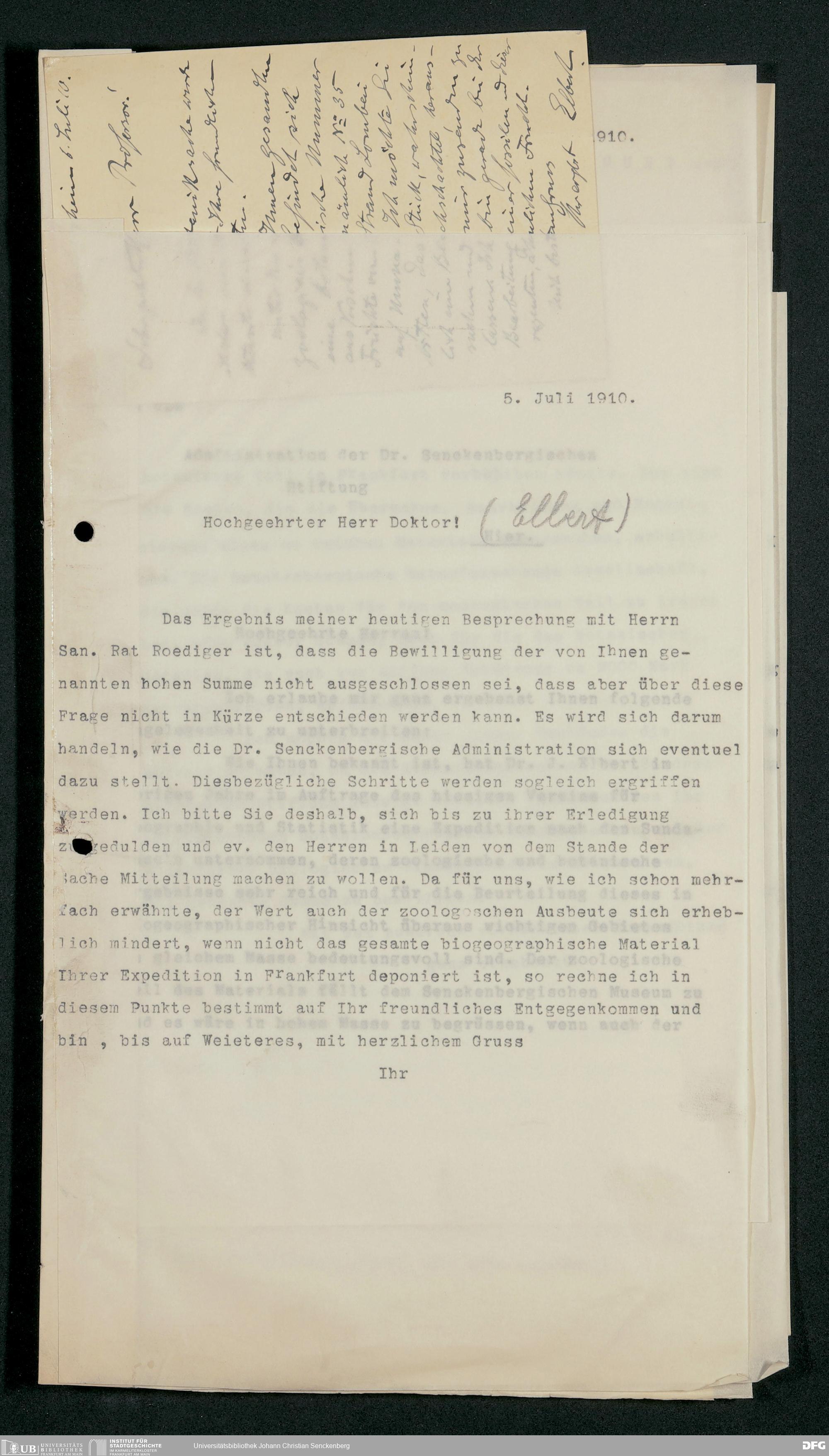 V176 Senckenberg Gesellschaft für Naturforschung, 228 - Unterstützung der Sunda-Expedition des Vereins für Geographie und Statistik zu Frankfurt am Main