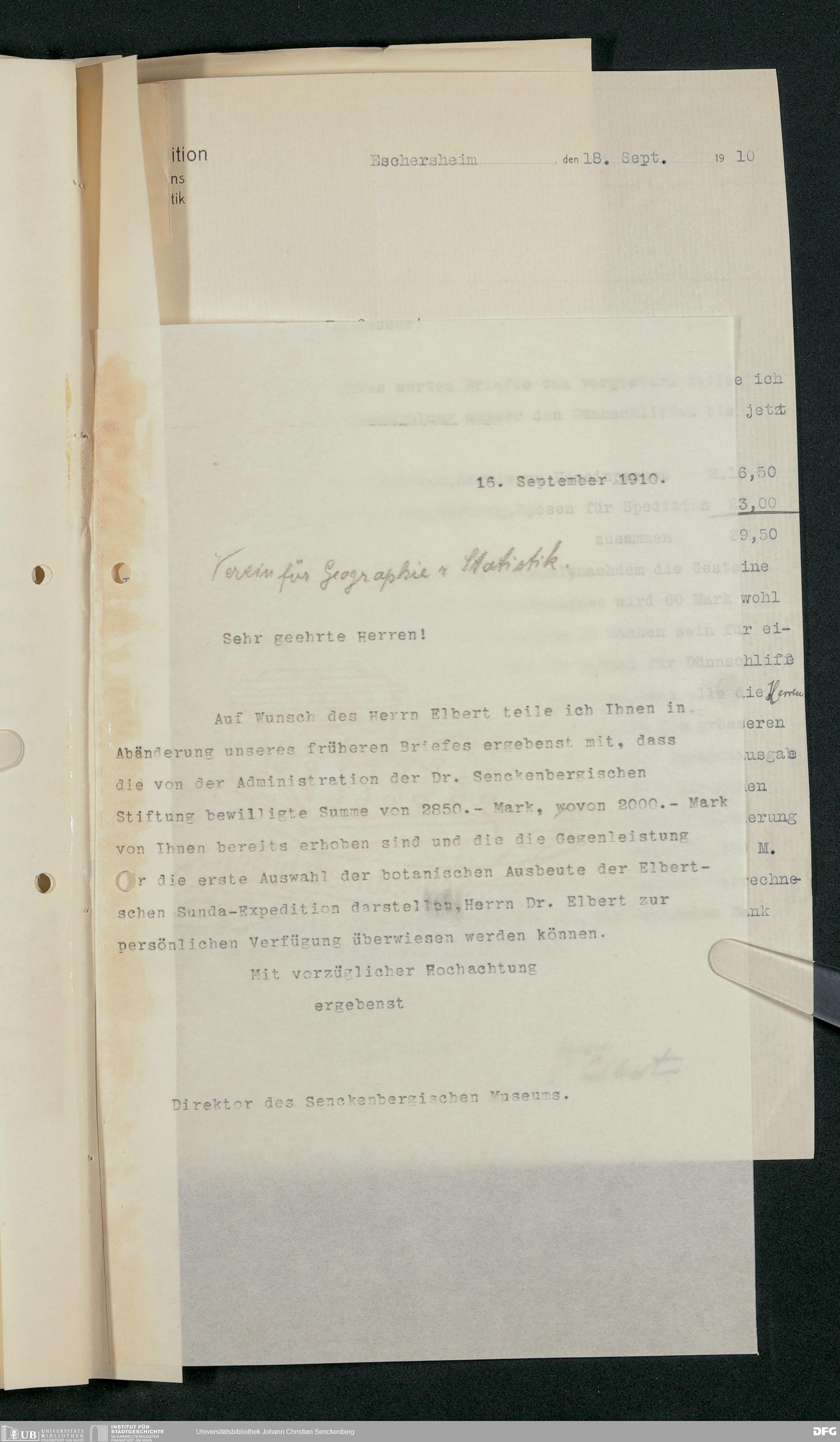 V176 Senckenberg Gesellschaft für Naturforschung, 228 - Unterstützung der Sunda-Expedition des Vereins für Geographie und Statistik zu Frankfurt am Main
