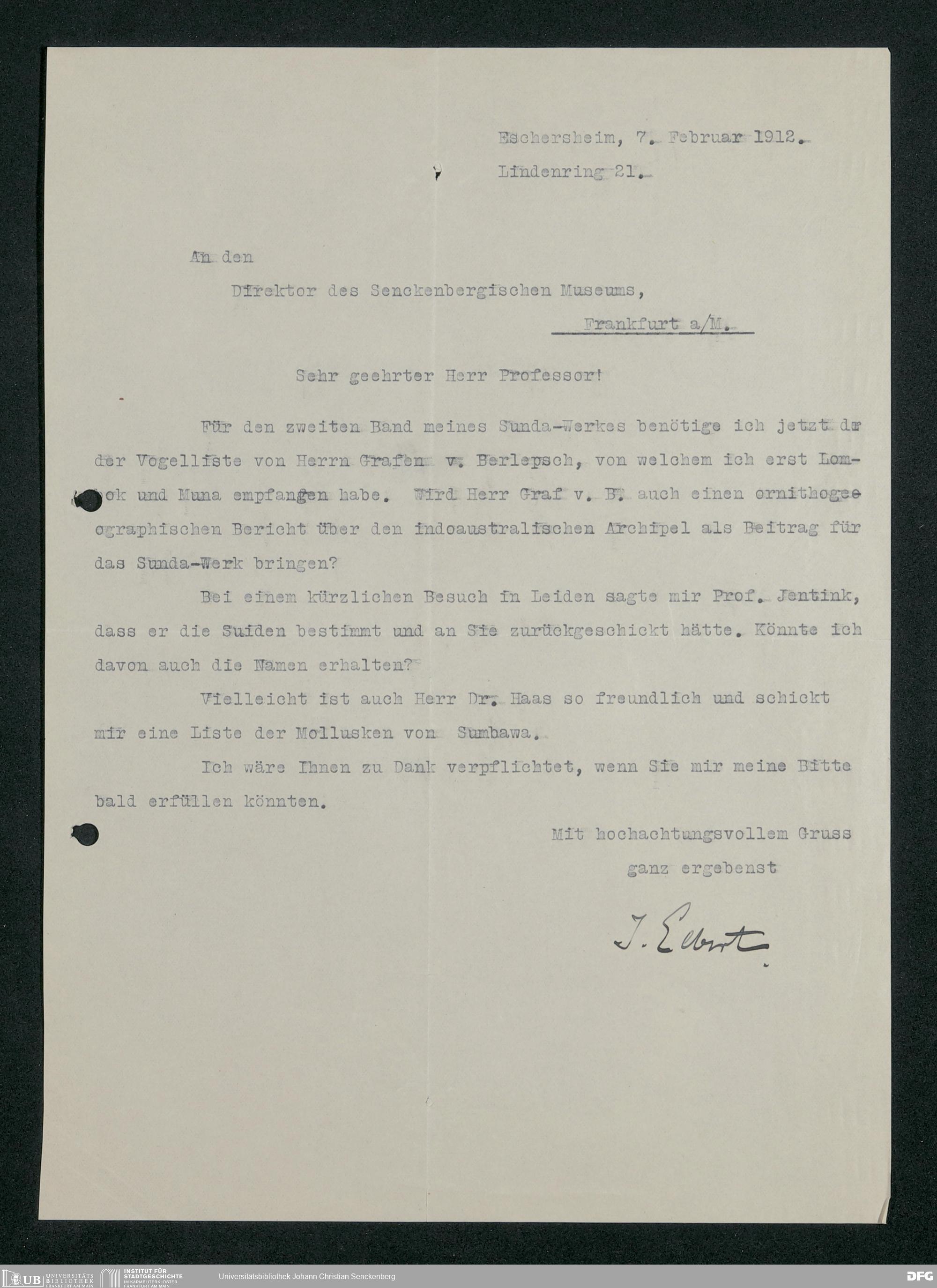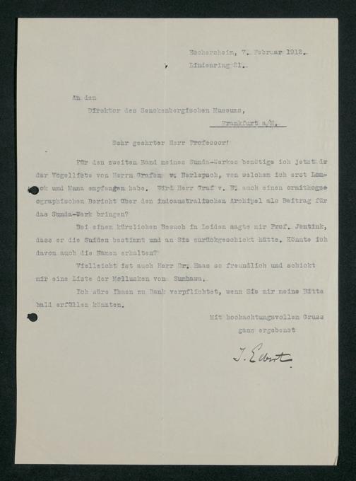 V176 Senckenberg Gesellschaft für Naturforschung, 228 - Unterstützung der Sunda-Expedition des Vereins für Geographie und Statistik zu Frankfurt am Main