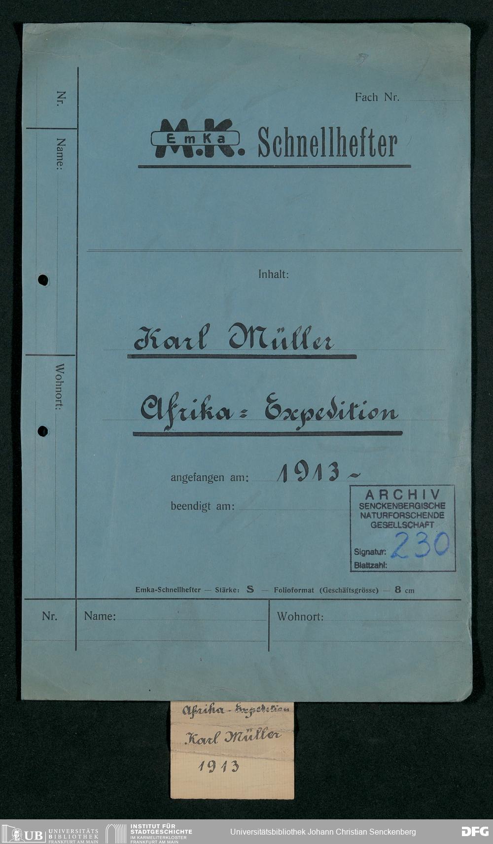 V176 Senckenberg Gesellschaft für Naturforschung, 230 - Unterstützung der Afrika-Expedition von Karl Müller