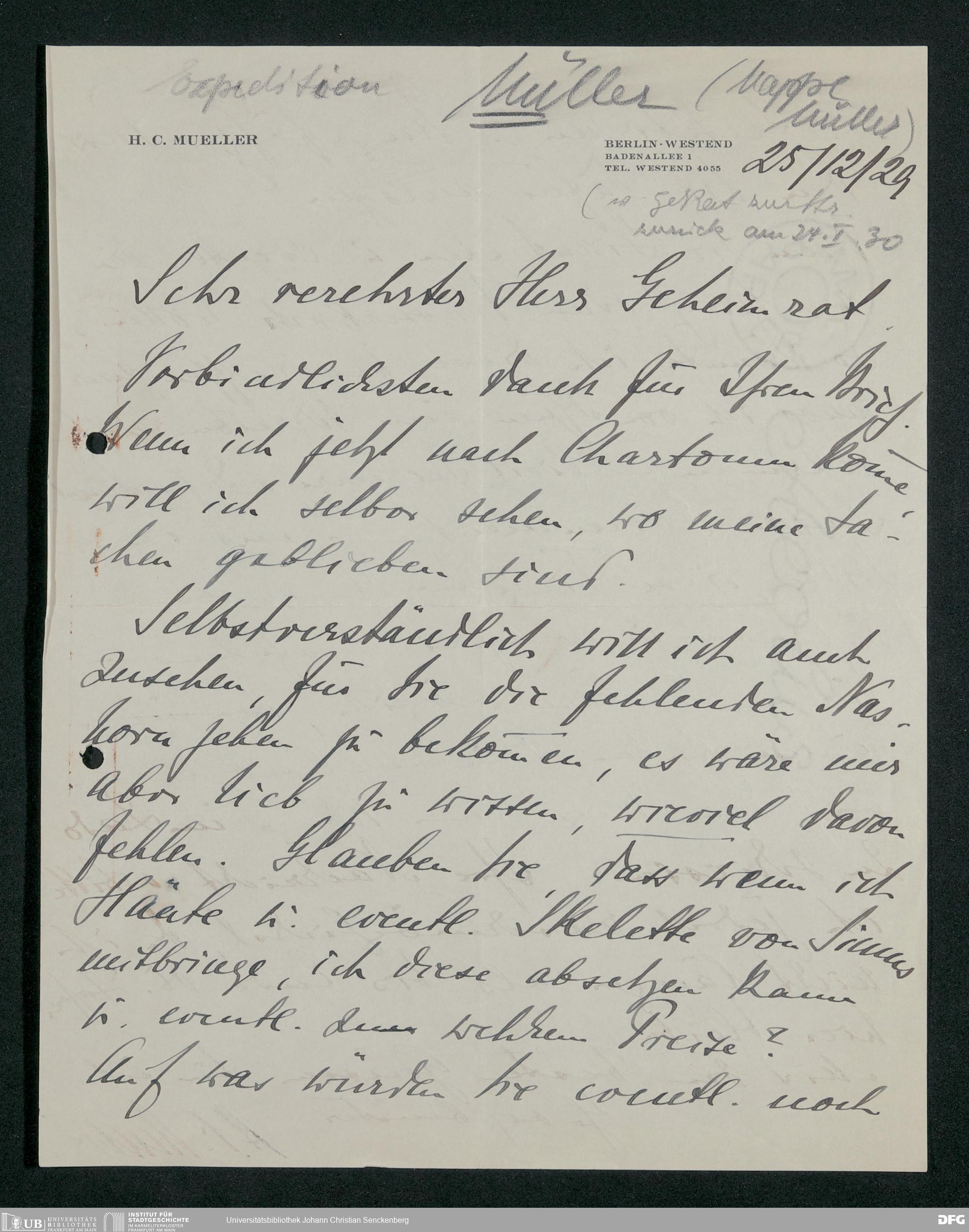 V176 Senckenberg Gesellschaft für Naturforschung, 230 - Unterstützung der Afrika-Expedition von Karl Müller
