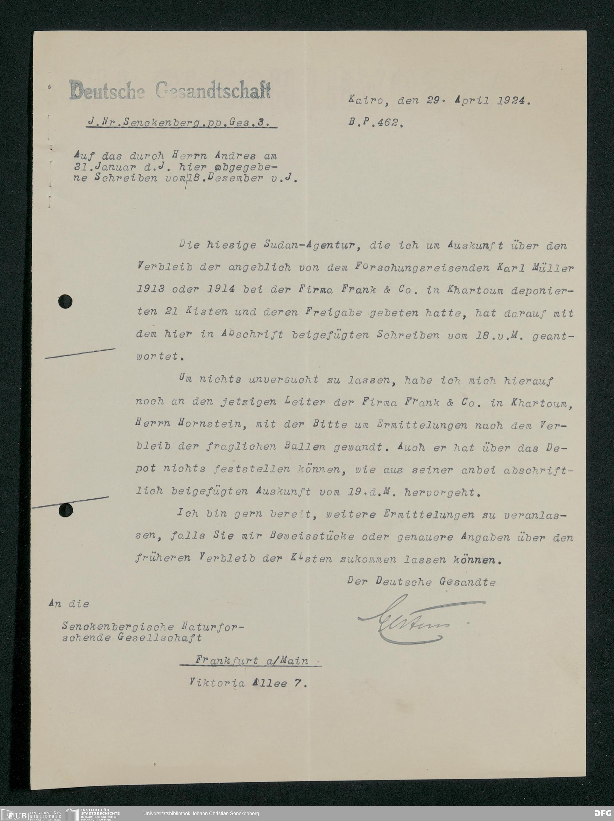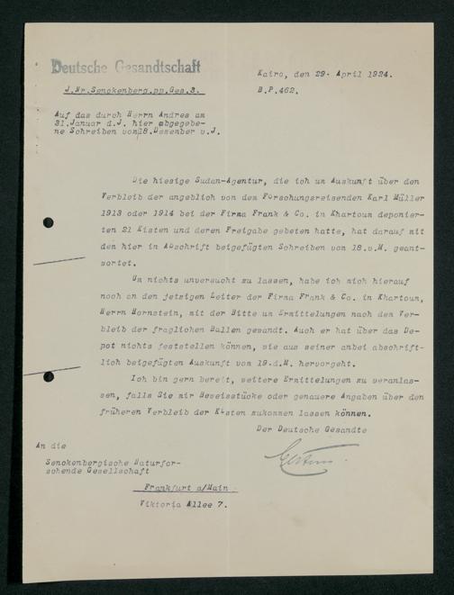 V176 Senckenberg Gesellschaft für Naturforschung, 230 - Unterstützung der Afrika-Expedition von Karl Müller