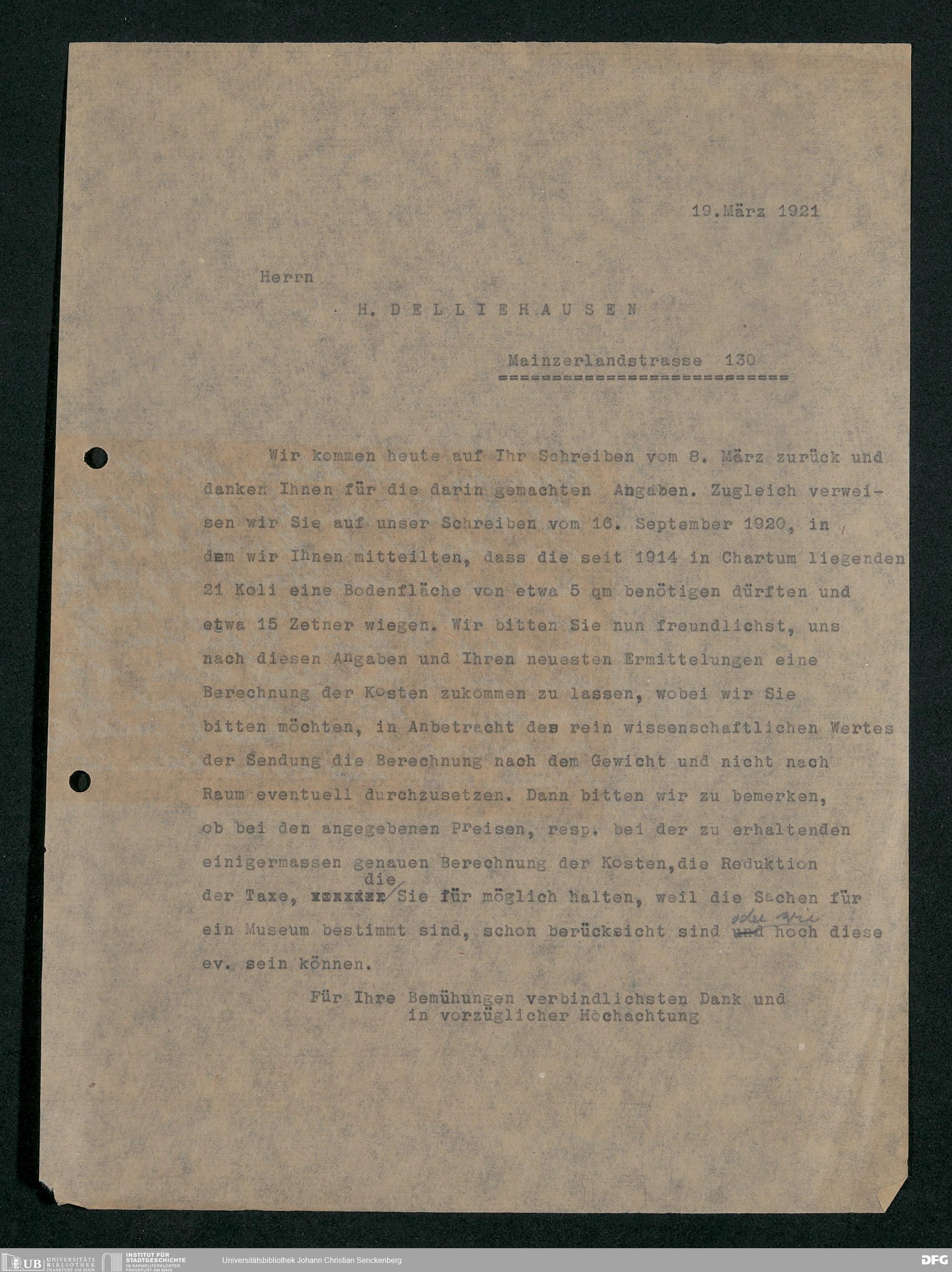 V176 Senckenberg Gesellschaft für Naturforschung, 230 - Unterstützung der Afrika-Expedition von Karl Müller