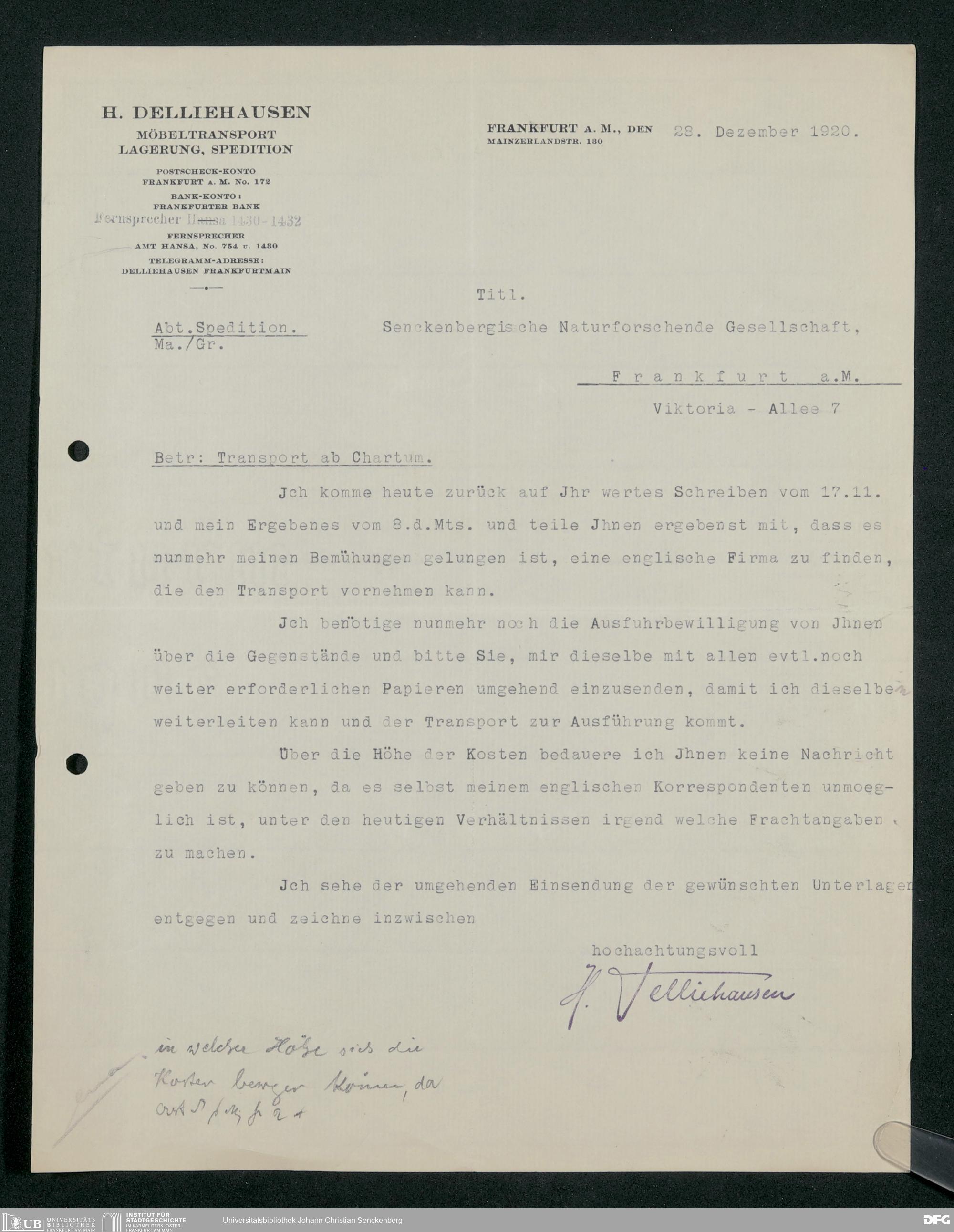 V176 Senckenberg Gesellschaft für Naturforschung, 230 - Unterstützung der Afrika-Expedition von Karl Müller