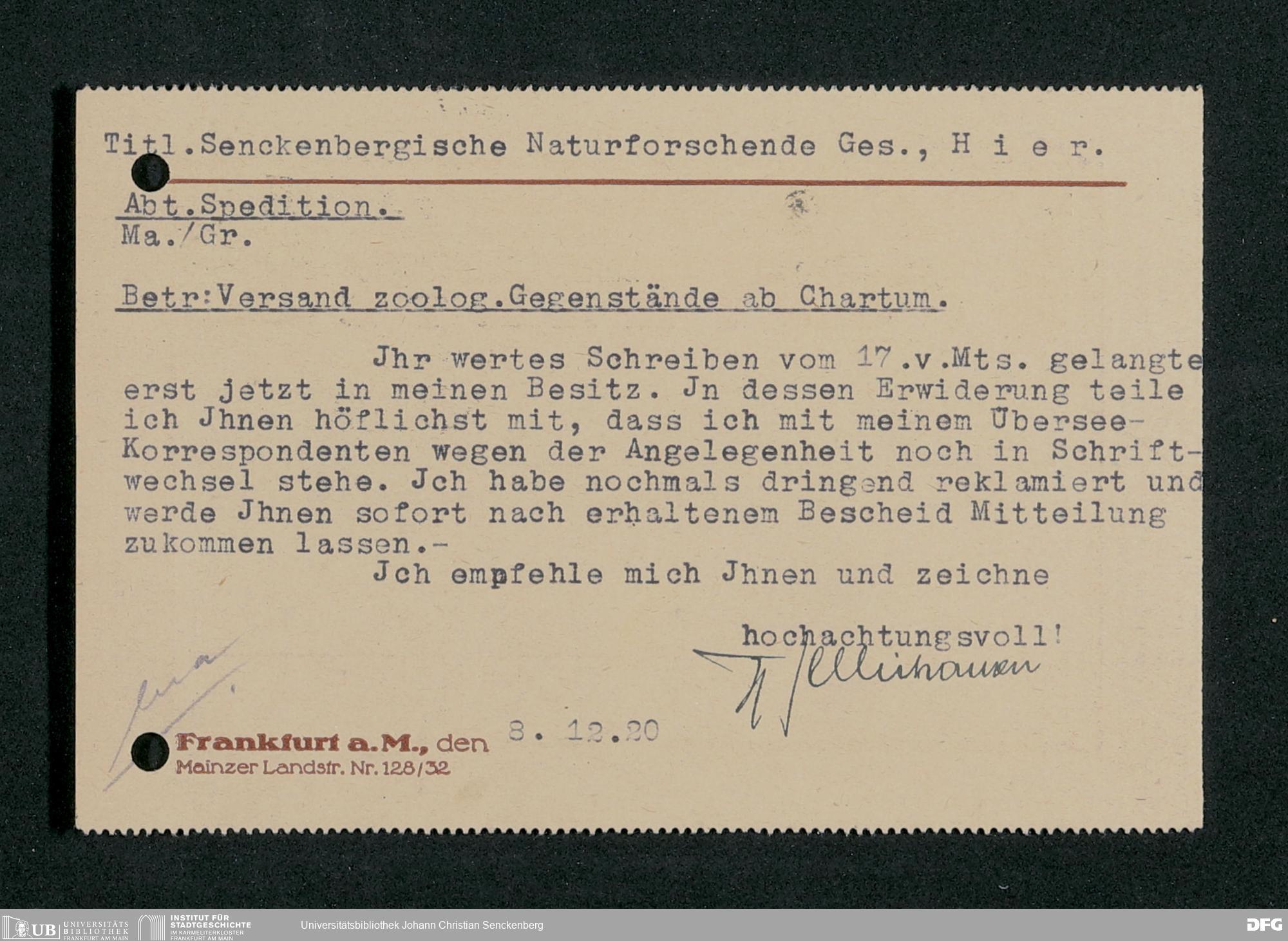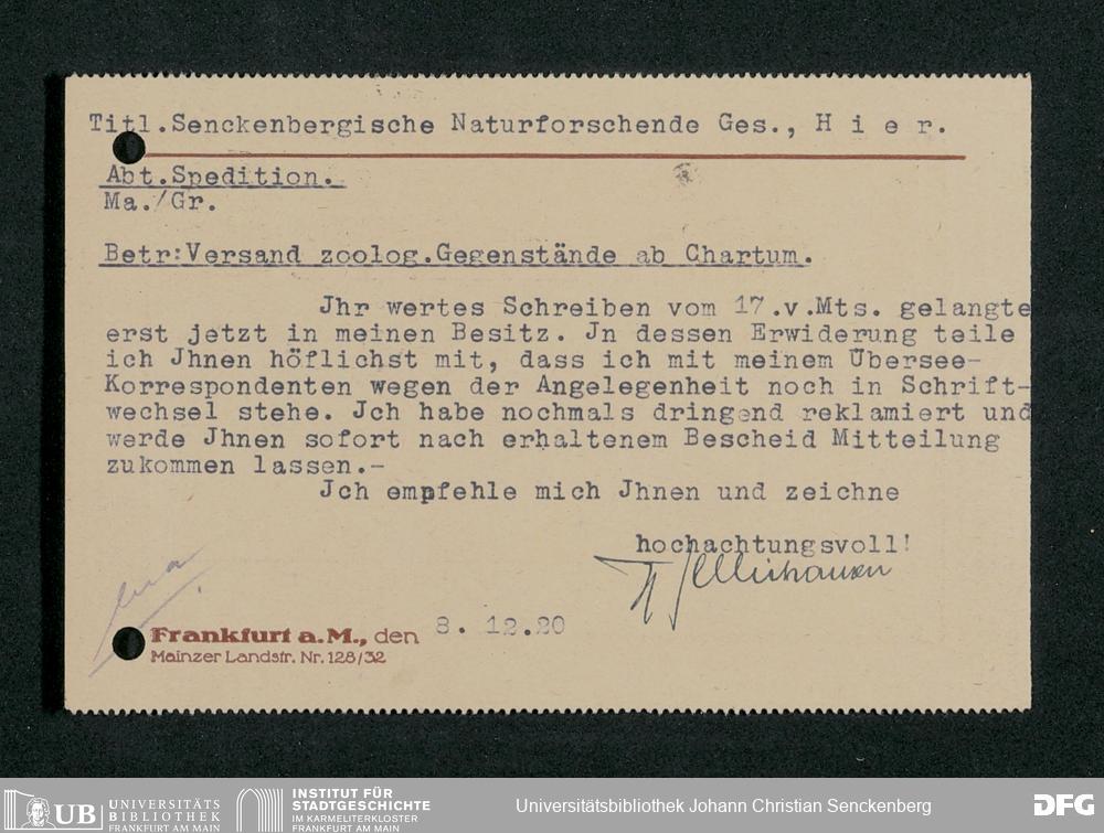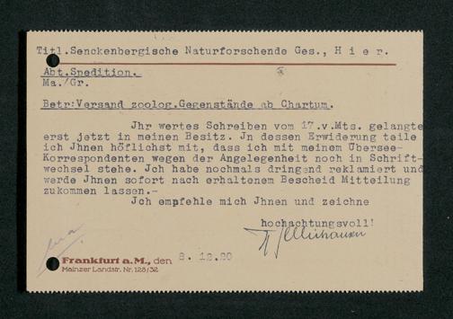 V176 Senckenberg Gesellschaft für Naturforschung, 230 - Unterstützung der Afrika-Expedition von Karl Müller