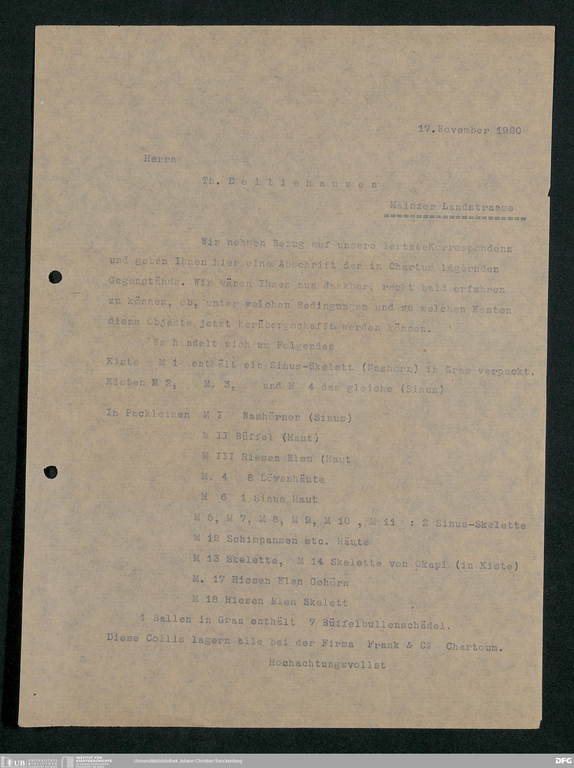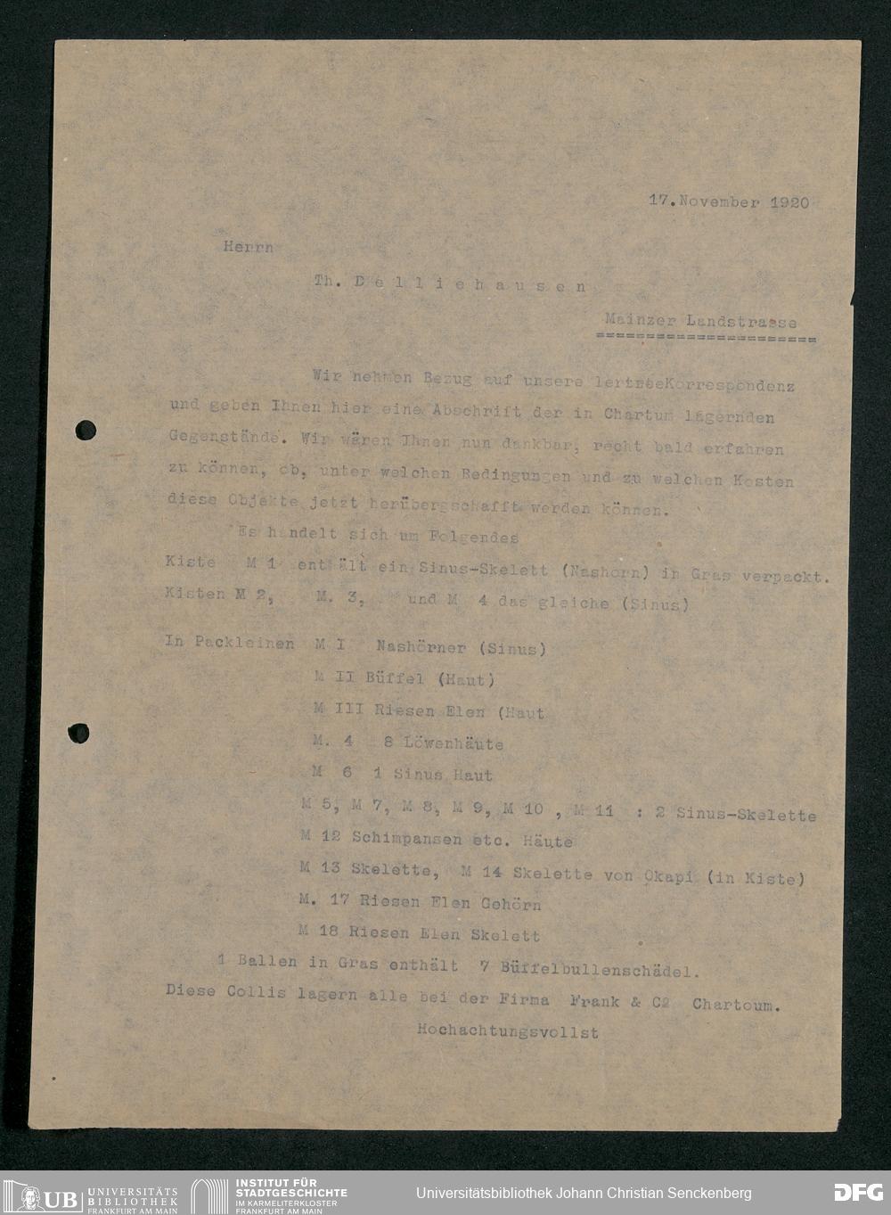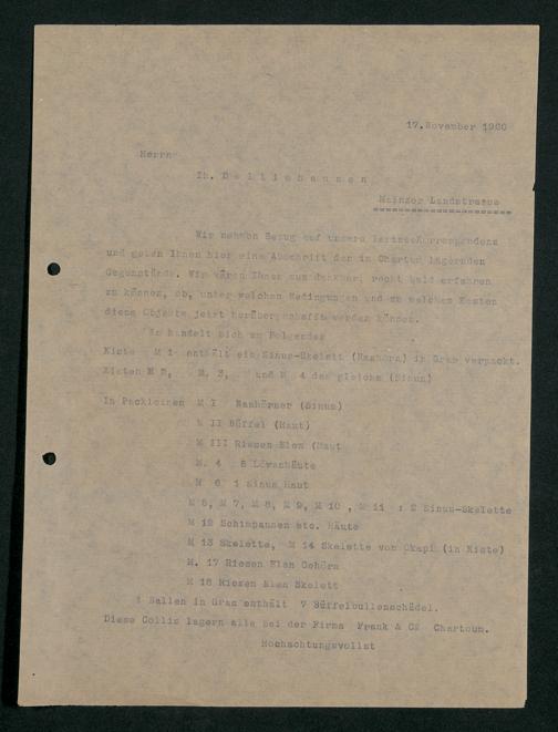 V176 Senckenberg Gesellschaft für Naturforschung, 230 - Unterstützung der Afrika-Expedition von Karl Müller