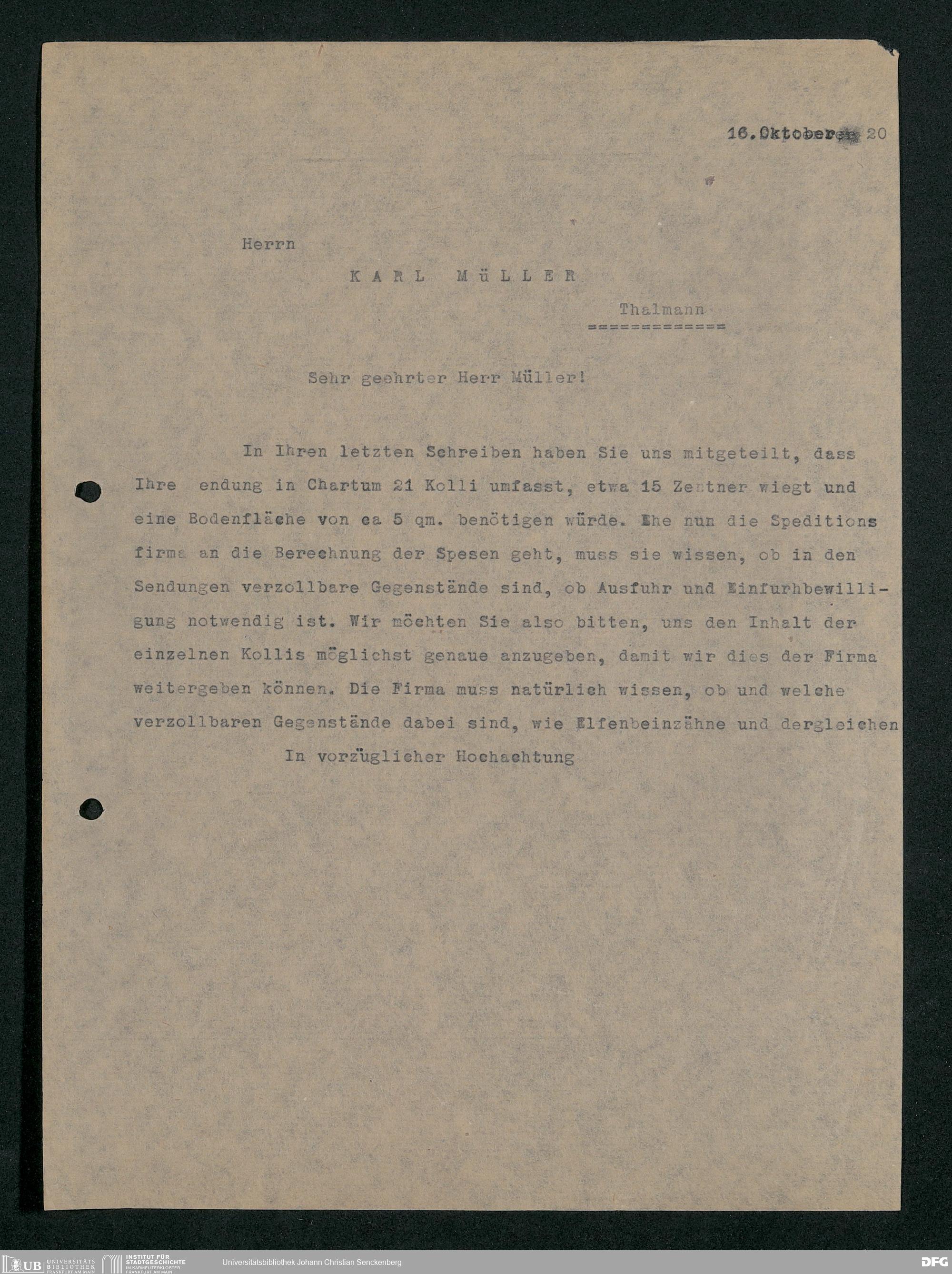 V176 Senckenberg Gesellschaft für Naturforschung, 230 - Unterstützung der Afrika-Expedition von Karl Müller