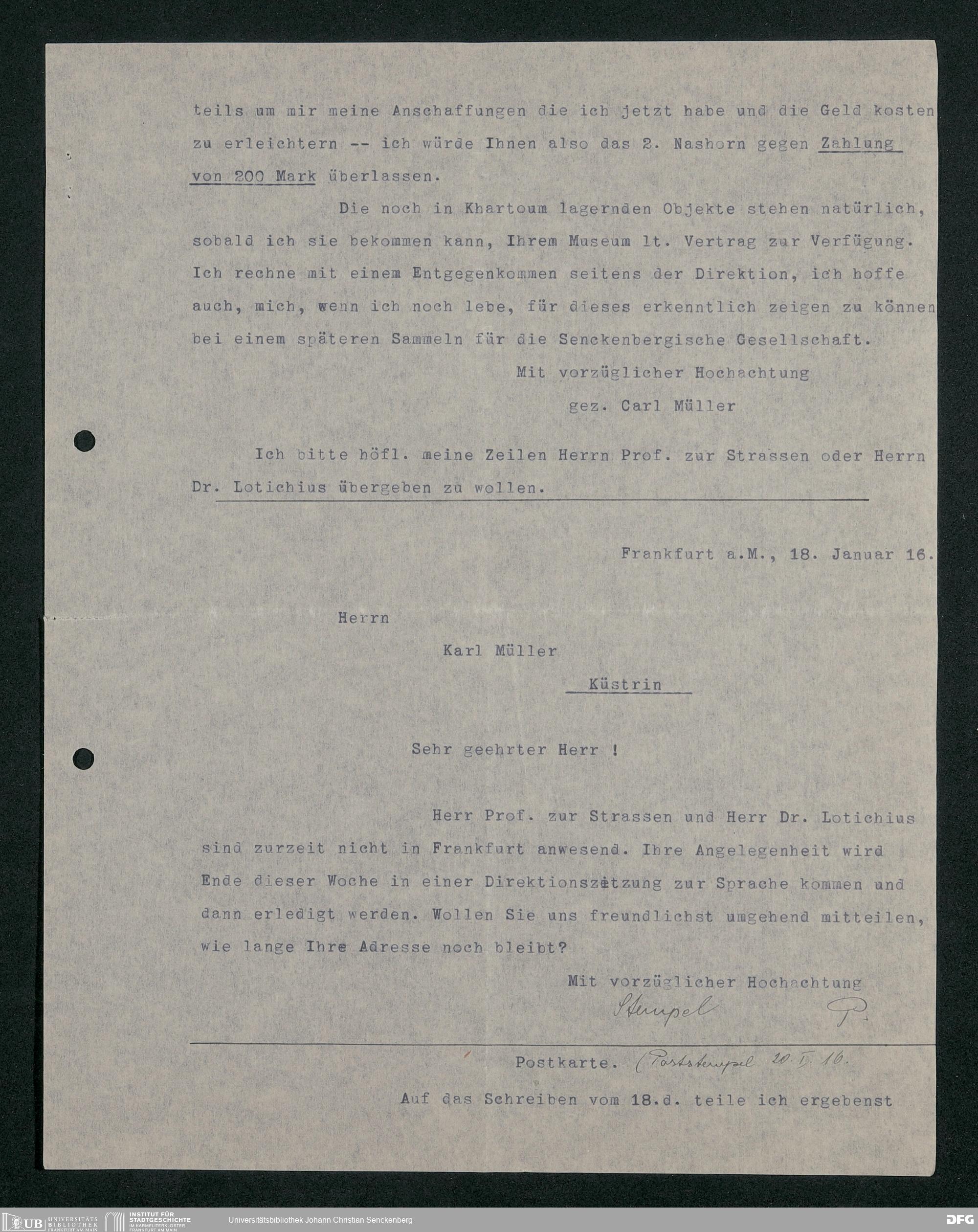 V176 Senckenberg Gesellschaft für Naturforschung, 230 - Unterstützung der Afrika-Expedition von Karl Müller