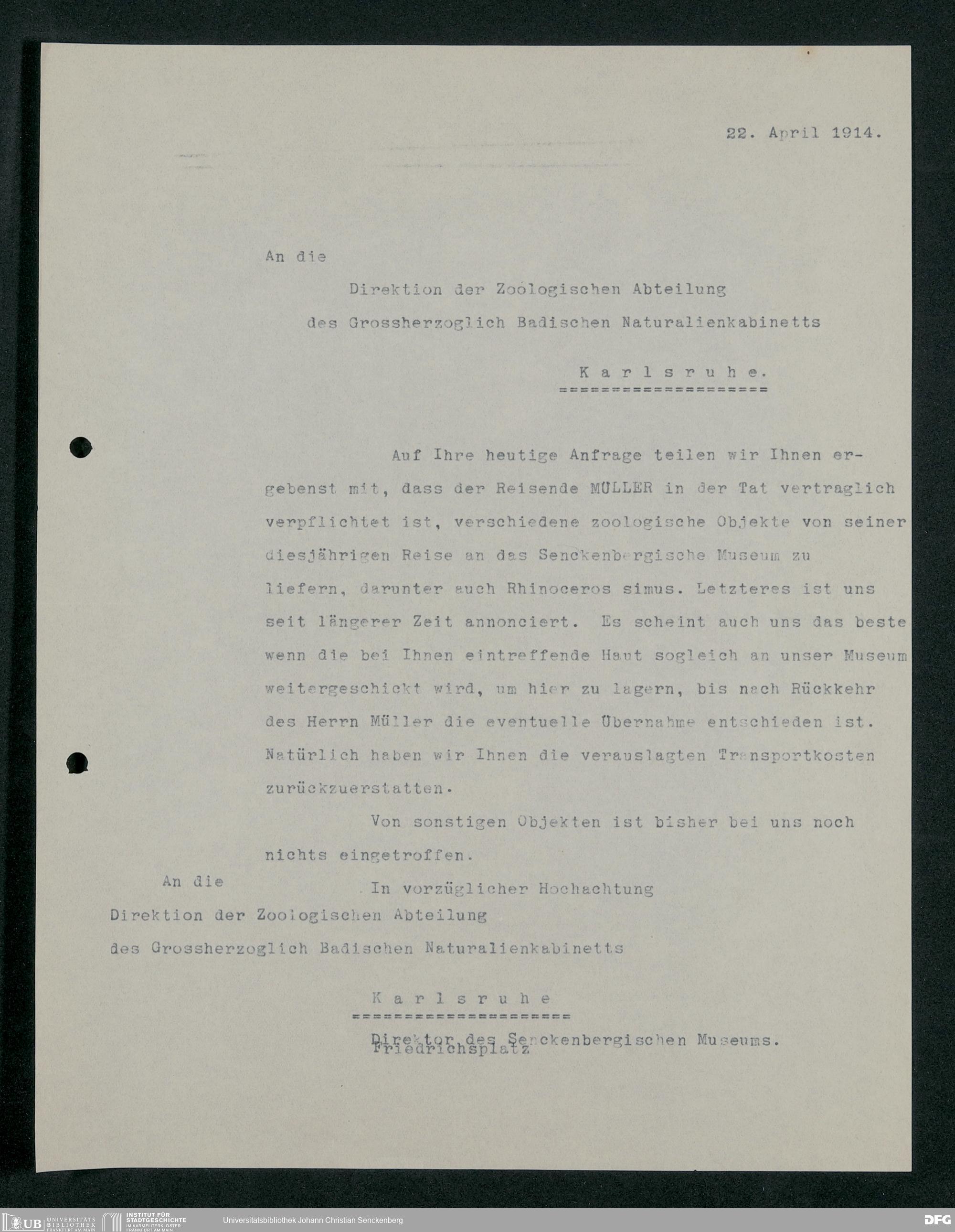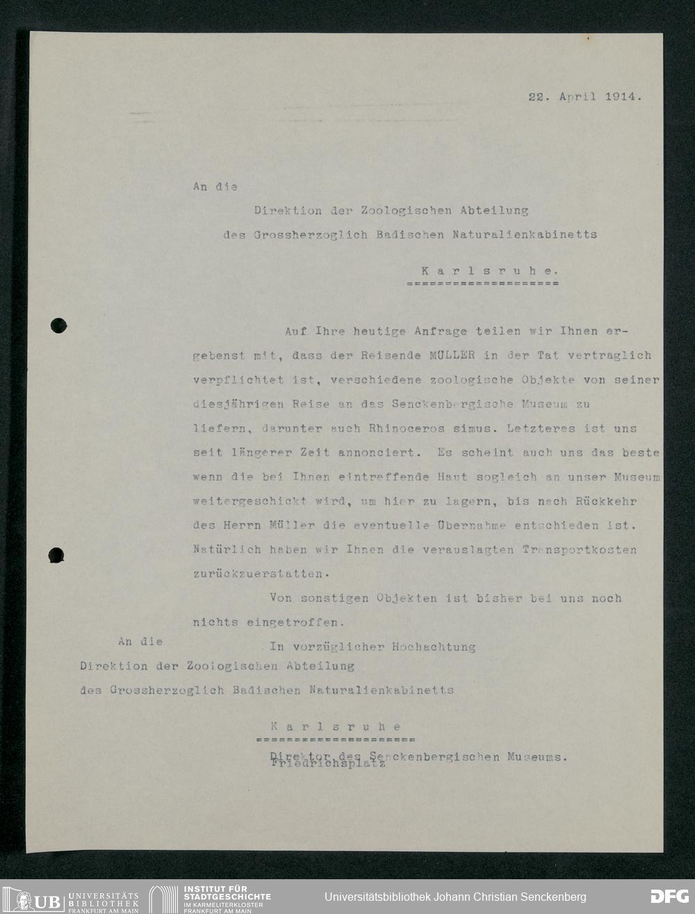 V176 Senckenberg Gesellschaft für Naturforschung, 230 - Unterstützung der Afrika-Expedition von Karl Müller