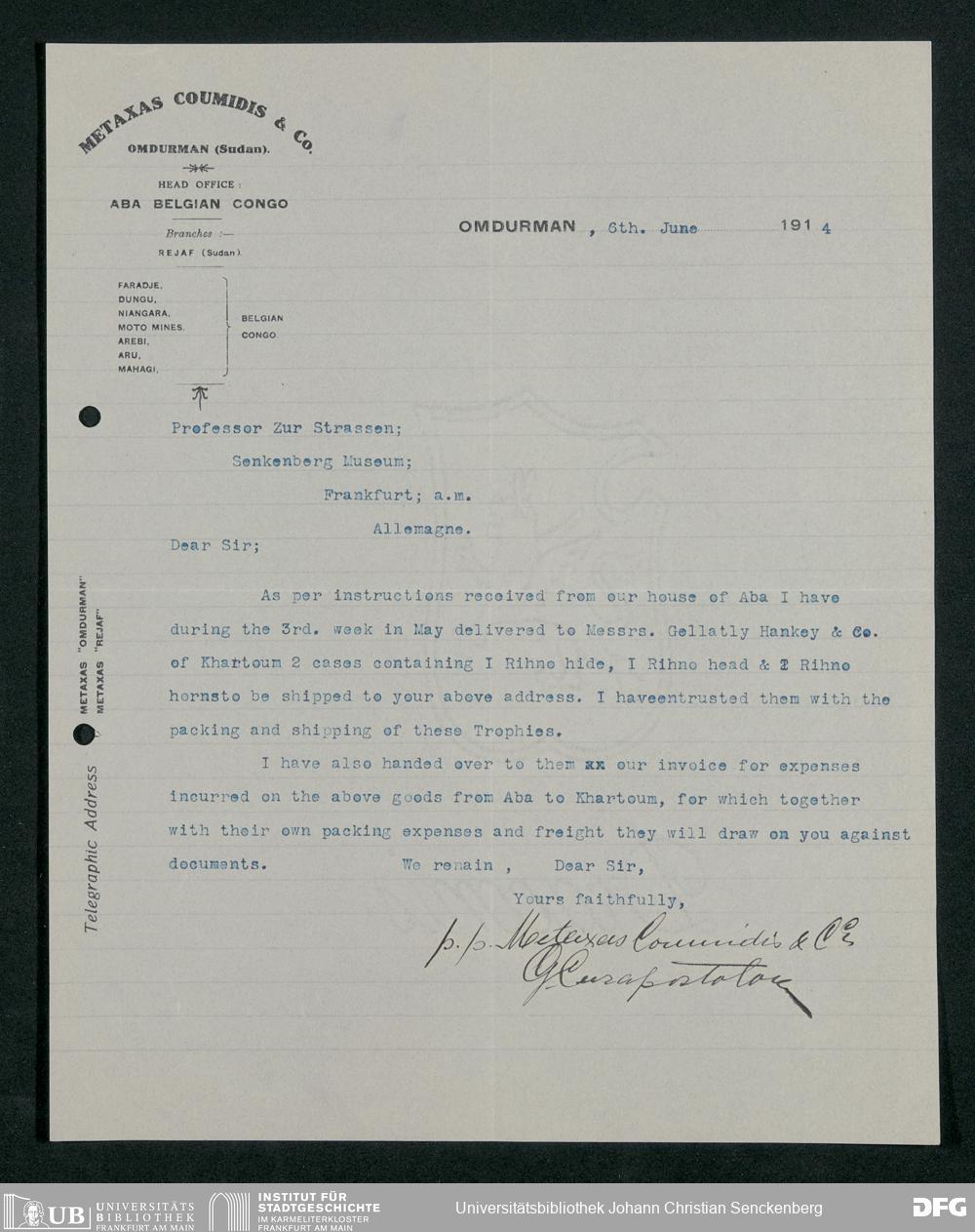 V176 Senckenberg Gesellschaft für Naturforschung, 230 - Unterstützung der Afrika-Expedition von Karl Müller