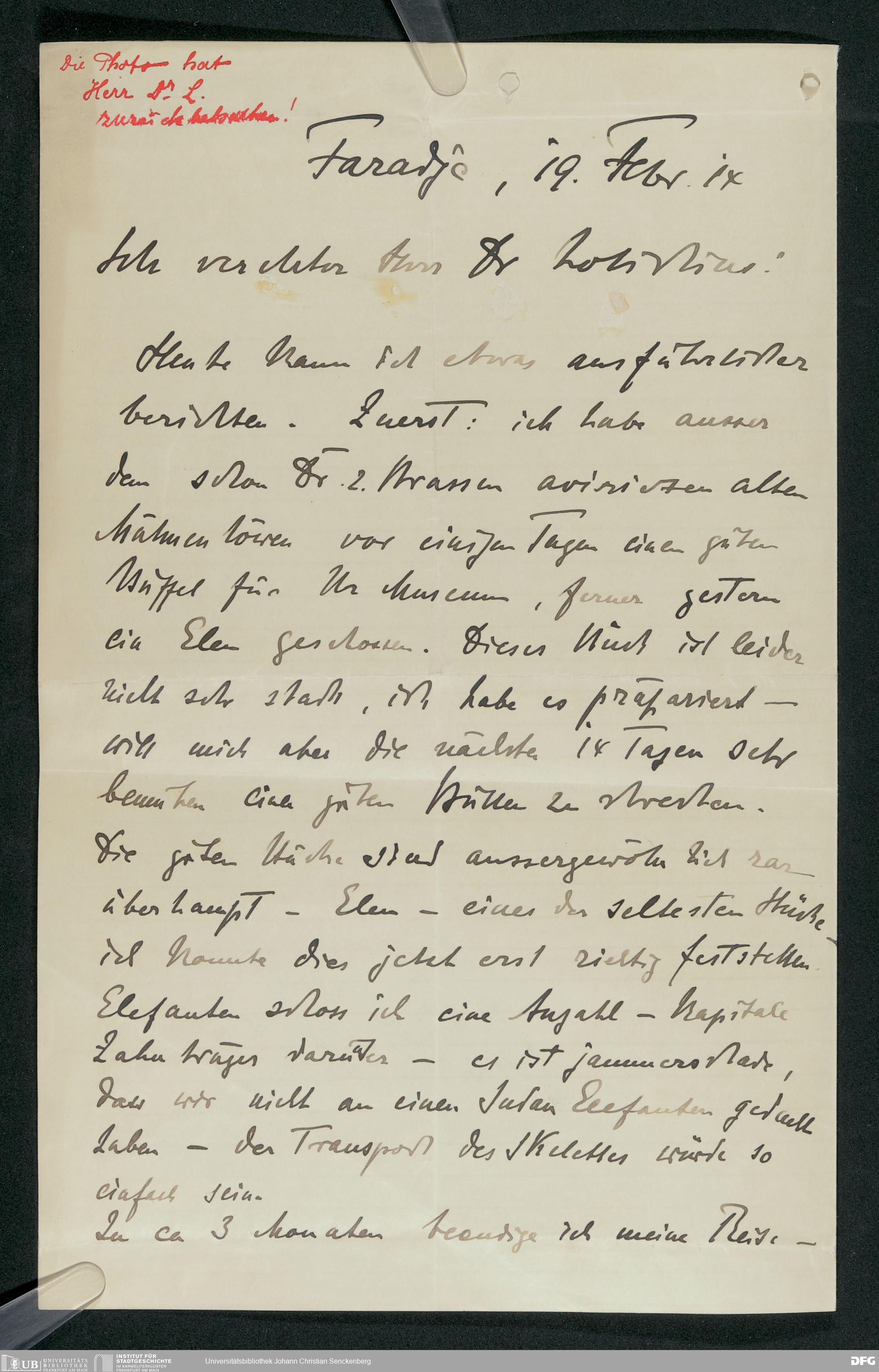 V176 Senckenberg Gesellschaft für Naturforschung, 230 - Unterstützung der Afrika-Expedition von Karl Müller