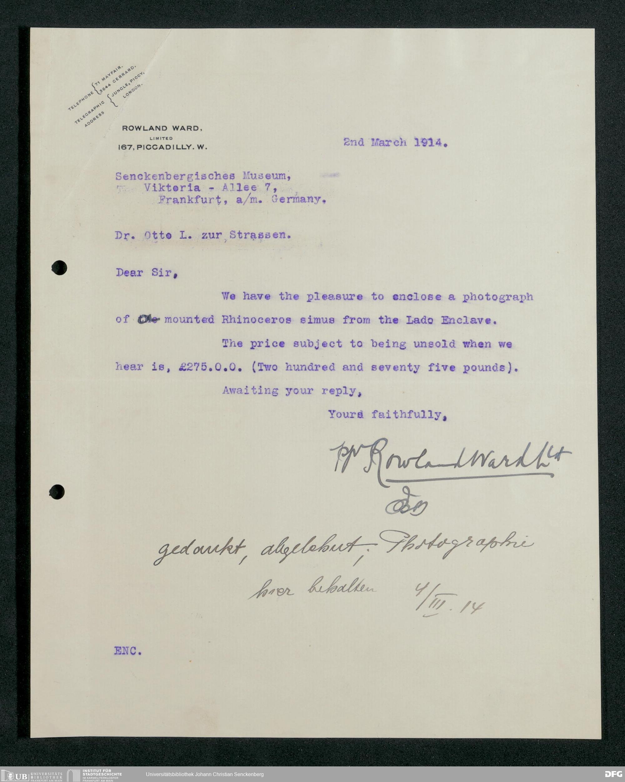 V176 Senckenberg Gesellschaft für Naturforschung, 230 - Unterstützung der Afrika-Expedition von Karl Müller