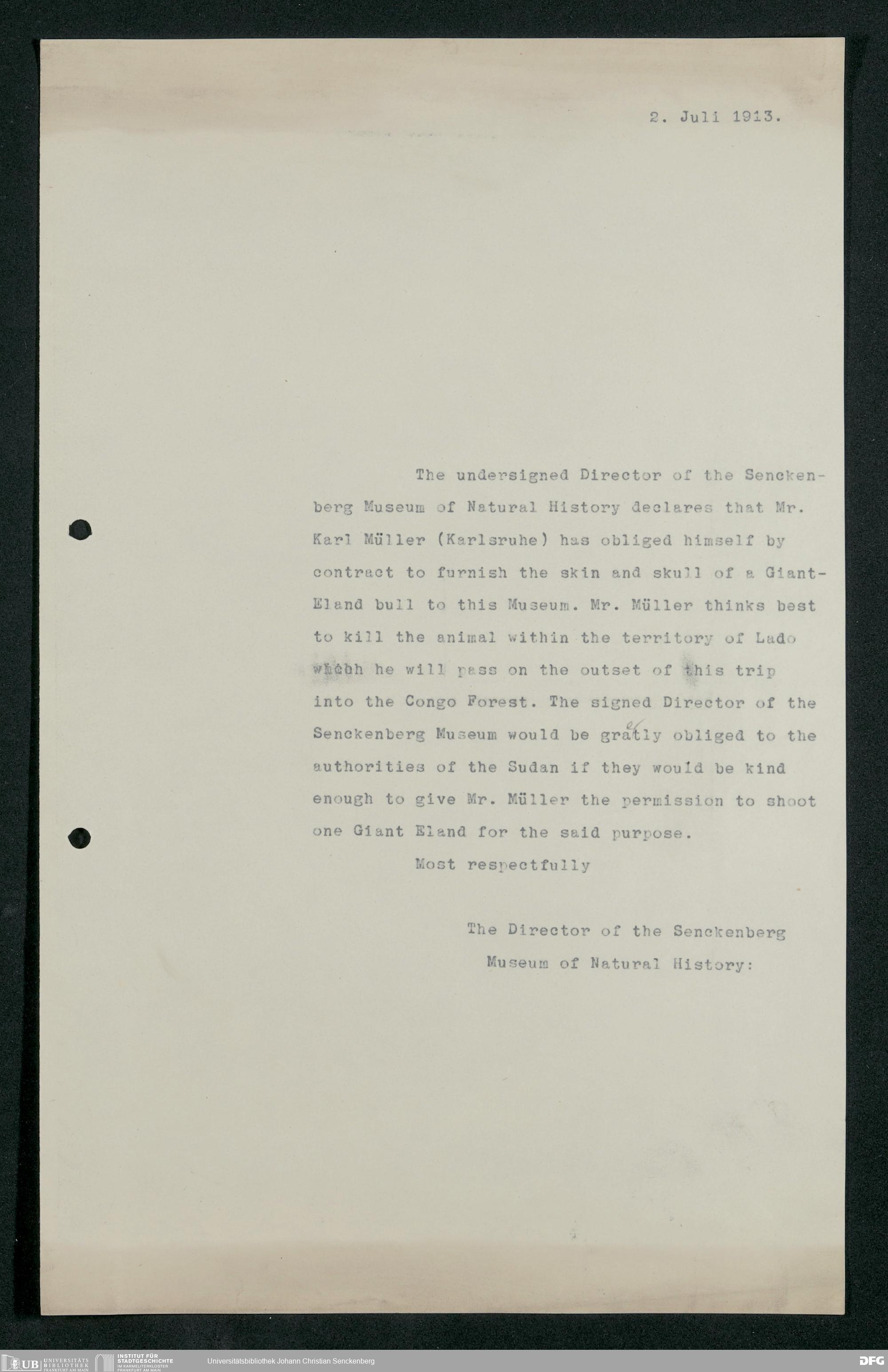 V176 Senckenberg Gesellschaft für Naturforschung, 230 - Unterstützung der Afrika-Expedition von Karl Müller