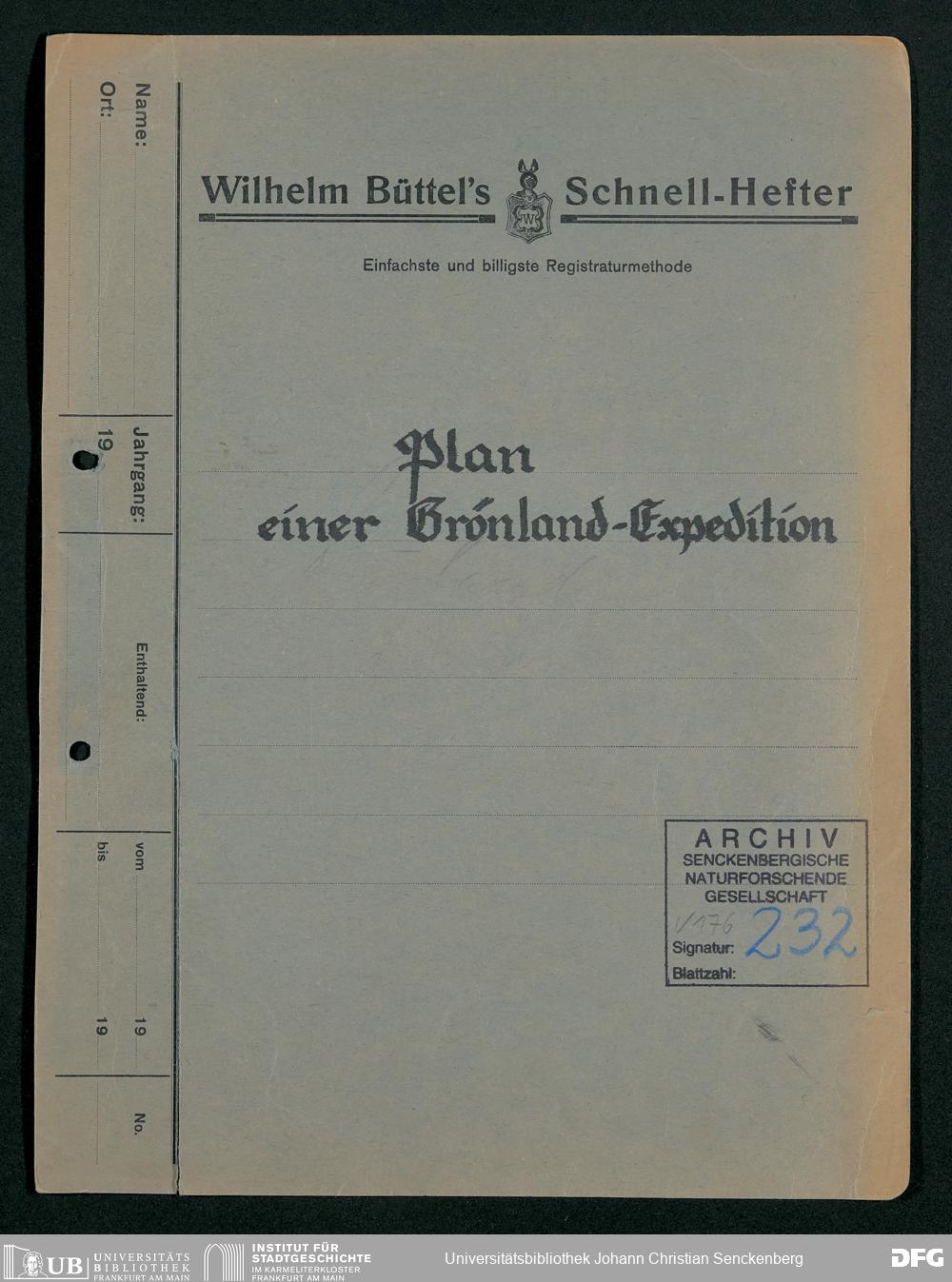 V176 Senckenberg Gesellschaft für Naturforschung, 232 - Planung einer deutschen Grönland-Expedition