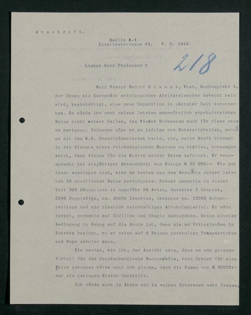 V176 Senckenberg Gesellschaft für Naturforschung, 233 - Unterstützung von Forschungsreisen und Sammeltätigkeit zum Zwecke des Erwerbs von Exponaten