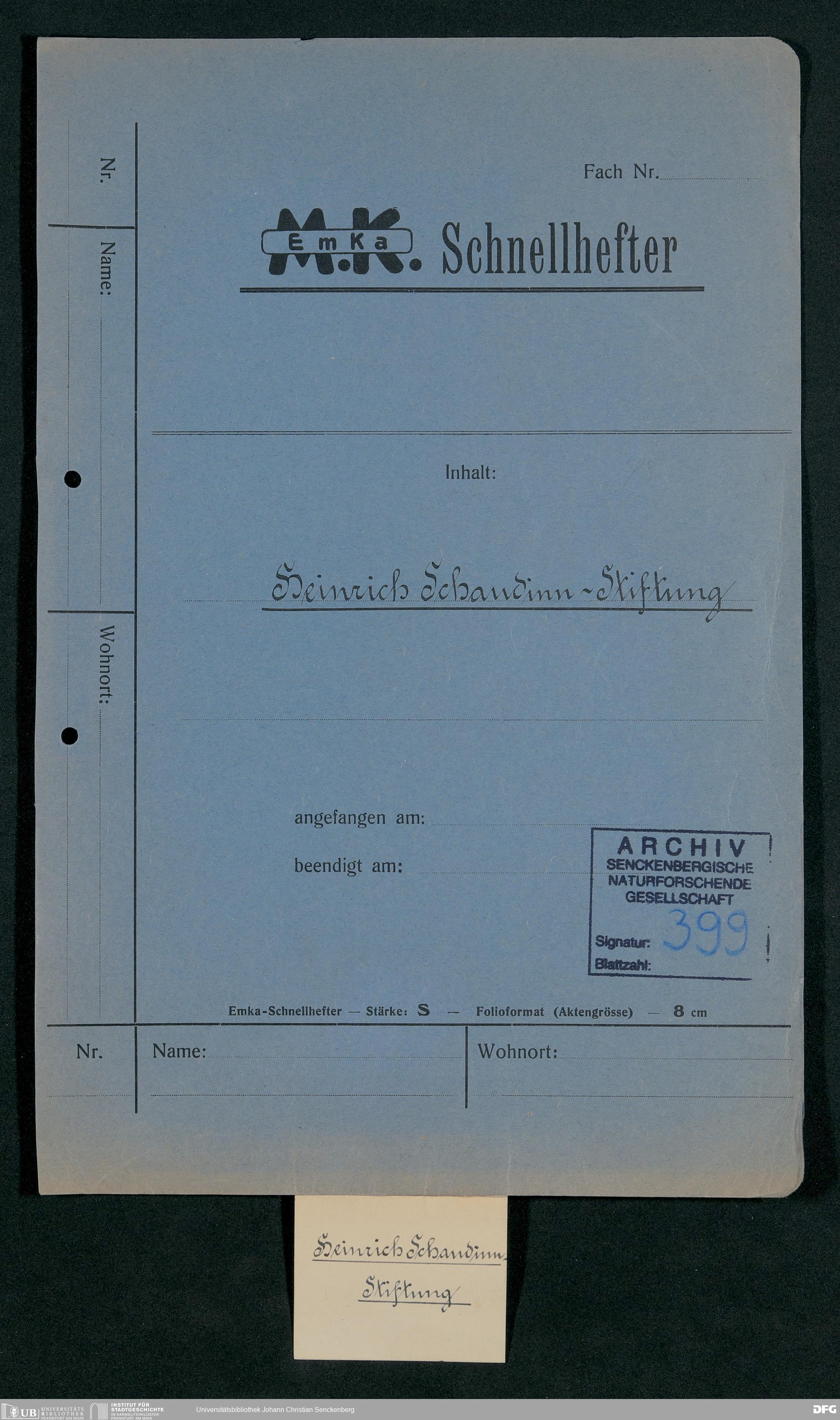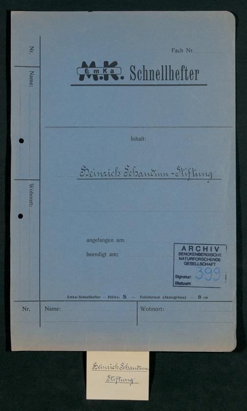 V176 Senckenberg Gesellschaft für Naturforschung, 399 - Verwaltung des Stiftungskapitals der Heinrich-Schaudinn-Stiftung