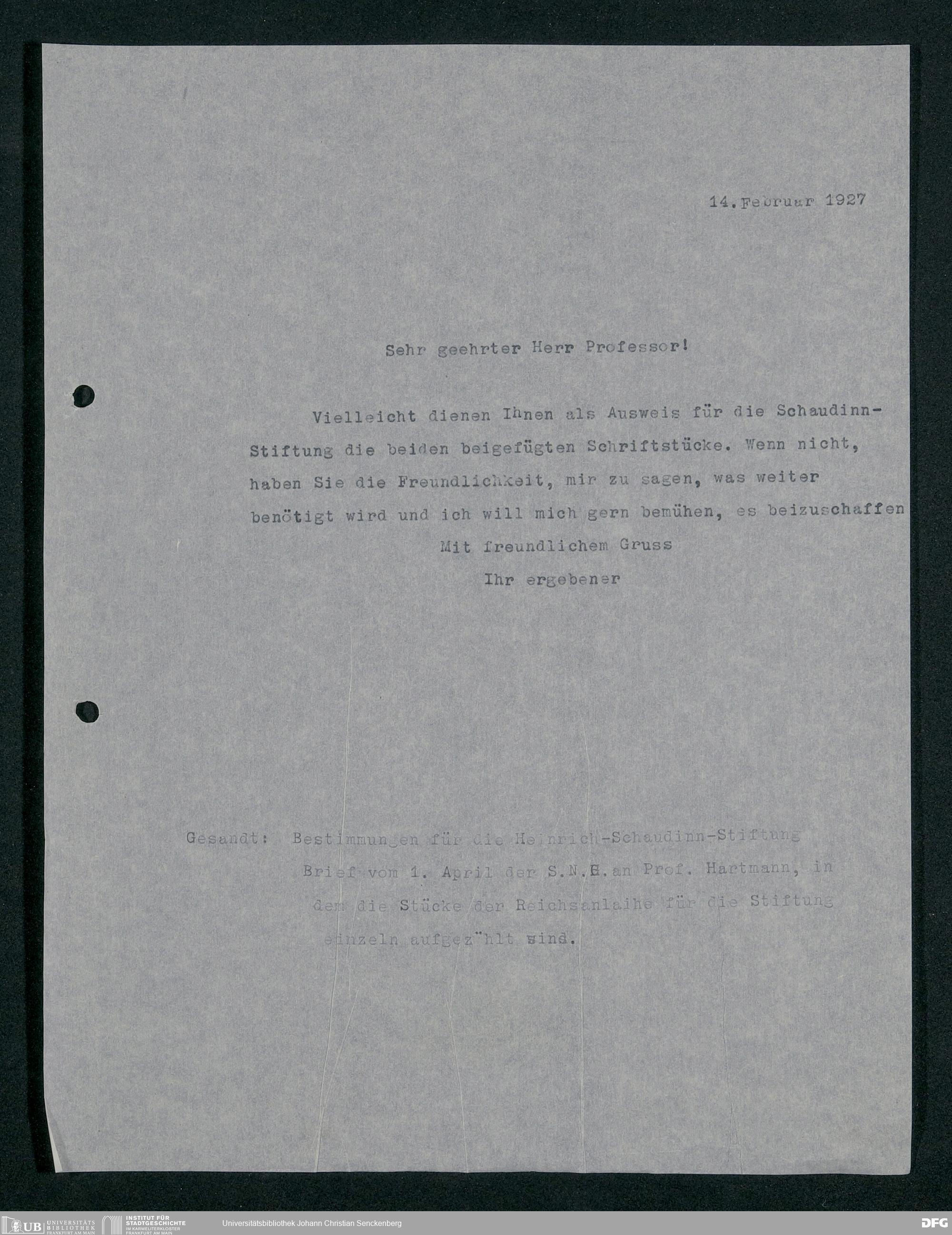 V176 Senckenberg Gesellschaft für Naturforschung, 399 - Verwaltung des Stiftungskapitals der Heinrich-Schaudinn-Stiftung